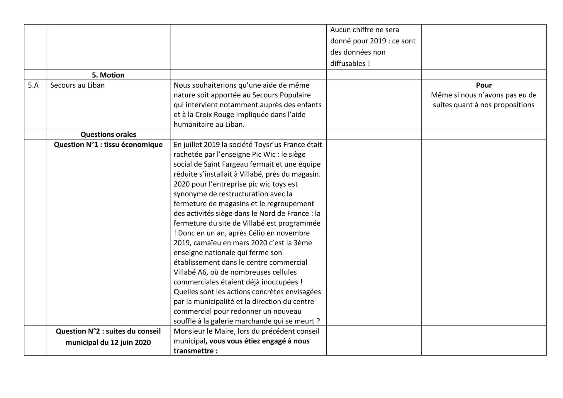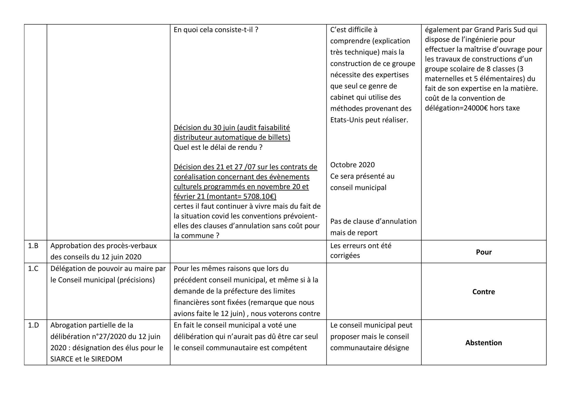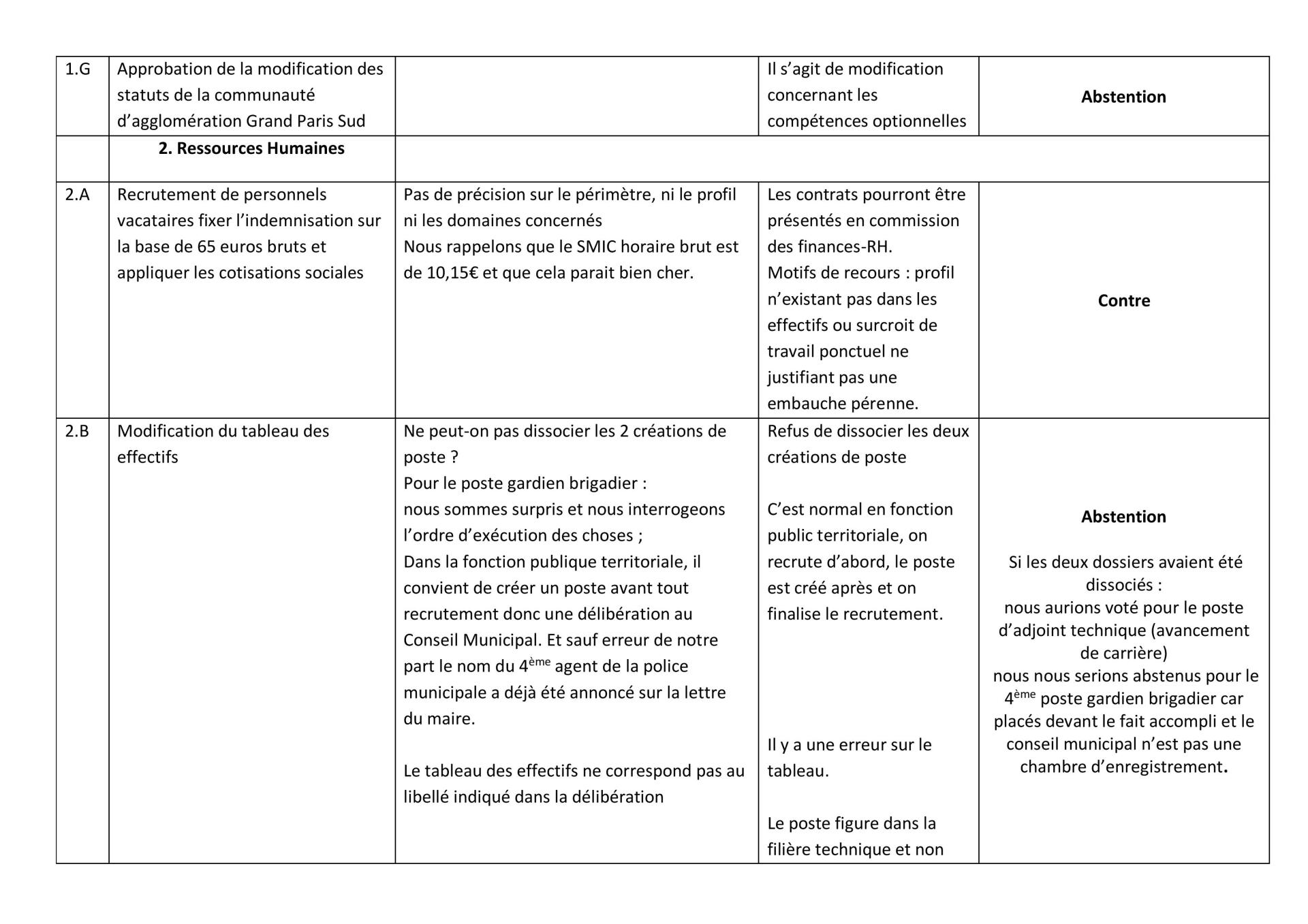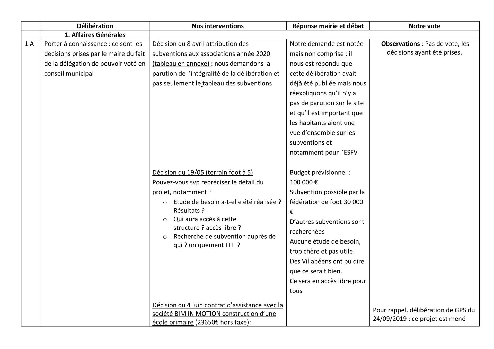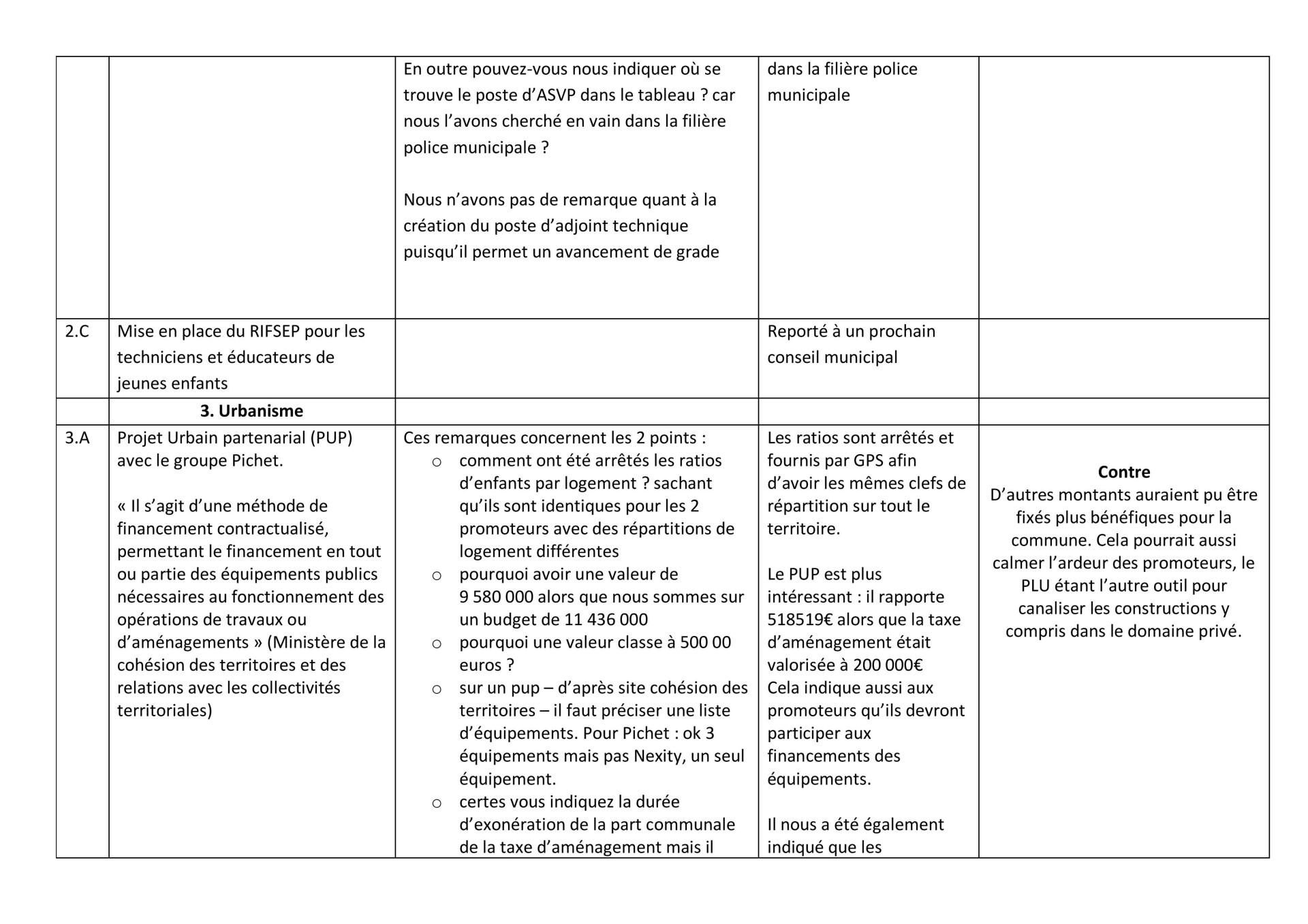 Ci-dessous, le tableau récapitulatif du conseil municipal (en pdf en cliquant ici)