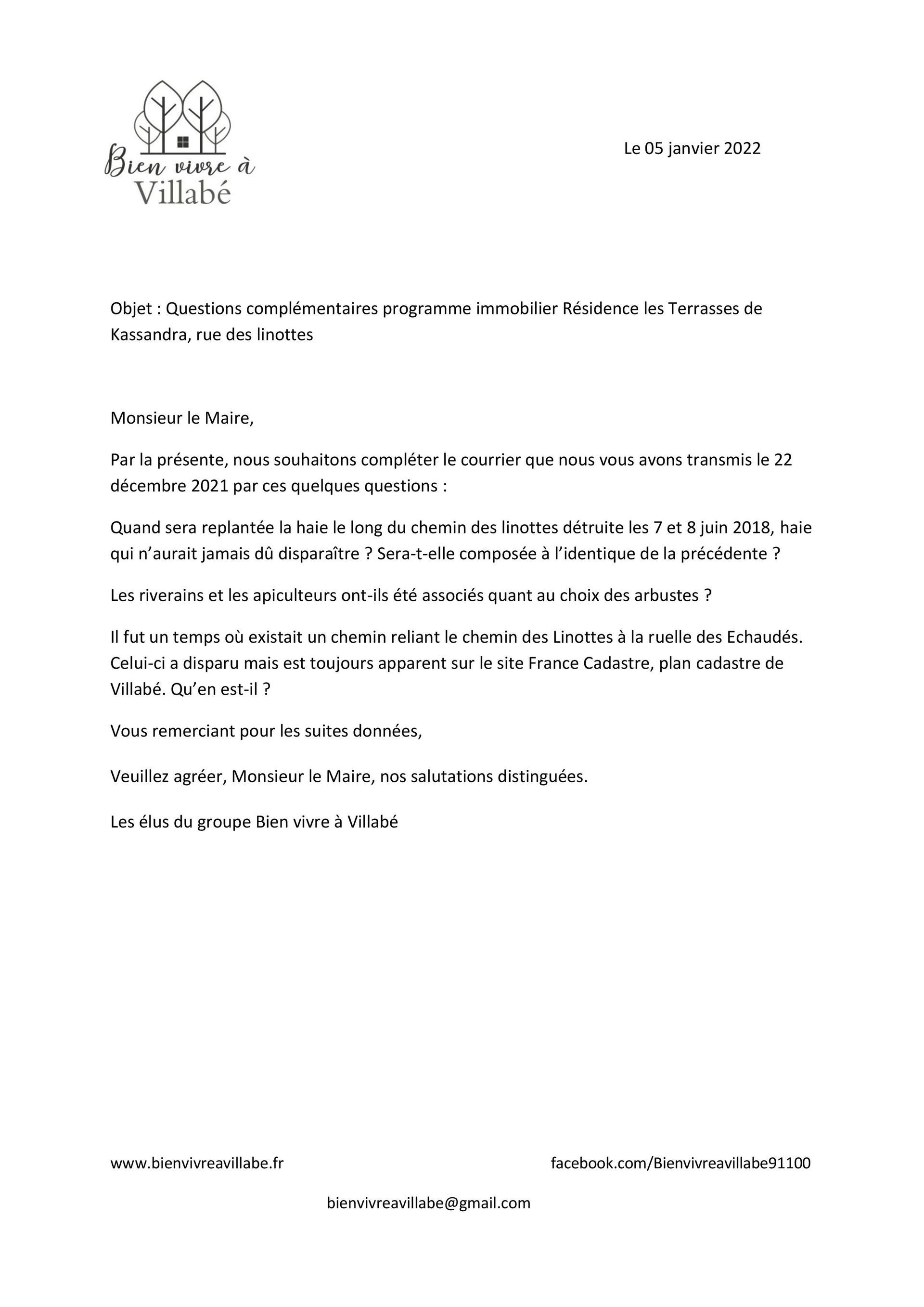 En janvier 2022, notre groupe a interrogé le maire par courrier en ces termes : « …Quand sera replantée la haie le long du chemin des linottes détruite les 7 et 8 juin 2018, haie qui n’aurait jamais dû disparaître ? Sera-t-elle composée à l’identique de la précédente ? Les riverains et les apiculteurs ont-ils été associés quant au choix des arbustes ?... »