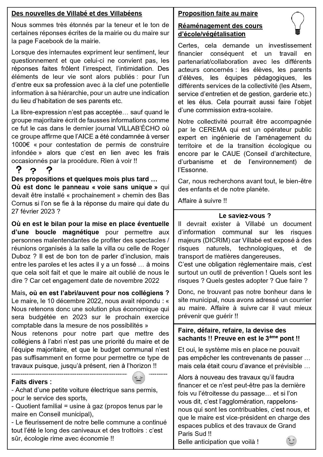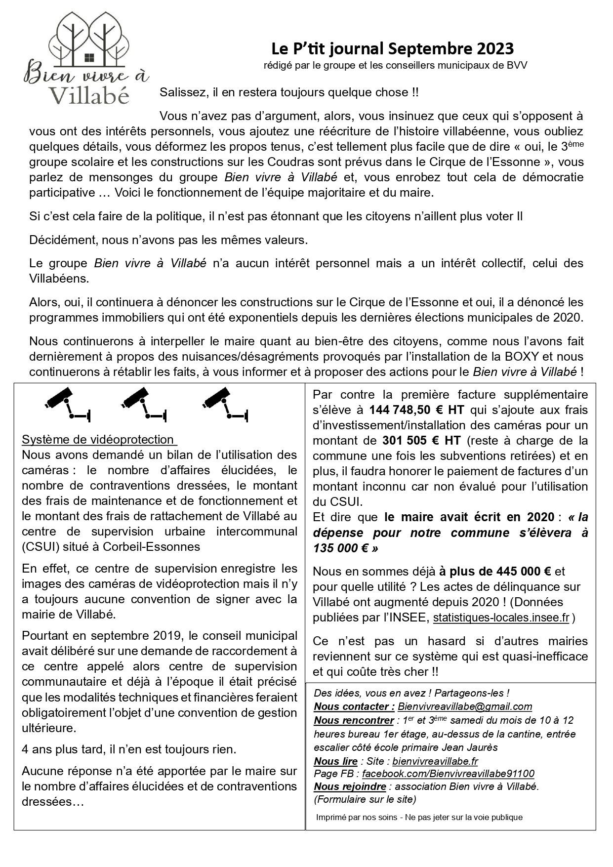 Le P’tit journal Septembre 2023 de Bien vivre à Villabé est en cours de distribution dans vos boîtes aux lettres. Il est fait pour vous informer en toute transparence, car pour nous l’essentiel, c’est vous !