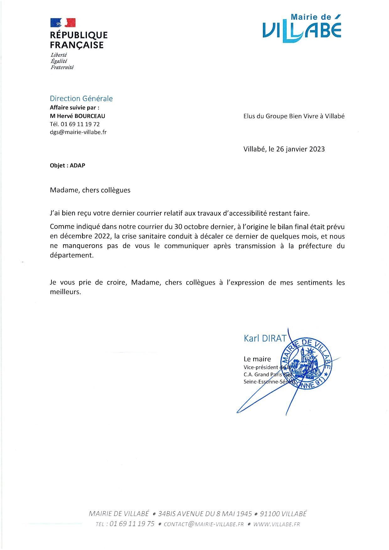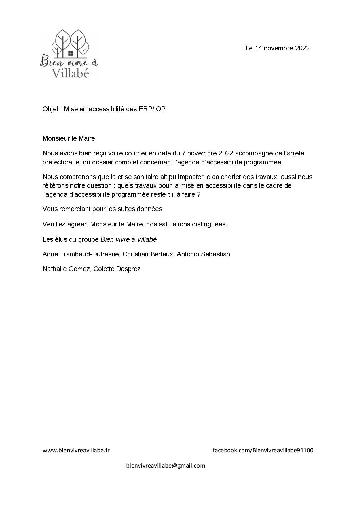 Le 14 novembre 2022, il est demandé au maire quels travaux restent-ils à faire pour être en conformité avec la mise en accessibilité des locaux pour les personnes à mobilité réduite, que ce soit les établissements recevant du public ou les installations ouvertes au public. Le maire de Villabé avait 6 ans à compter du 18 janvier 2017 pour réaliser ces travaux dans le cadre de l’Agenda d’accessibilité programmée validée par le préfet sous peine de sanctions.