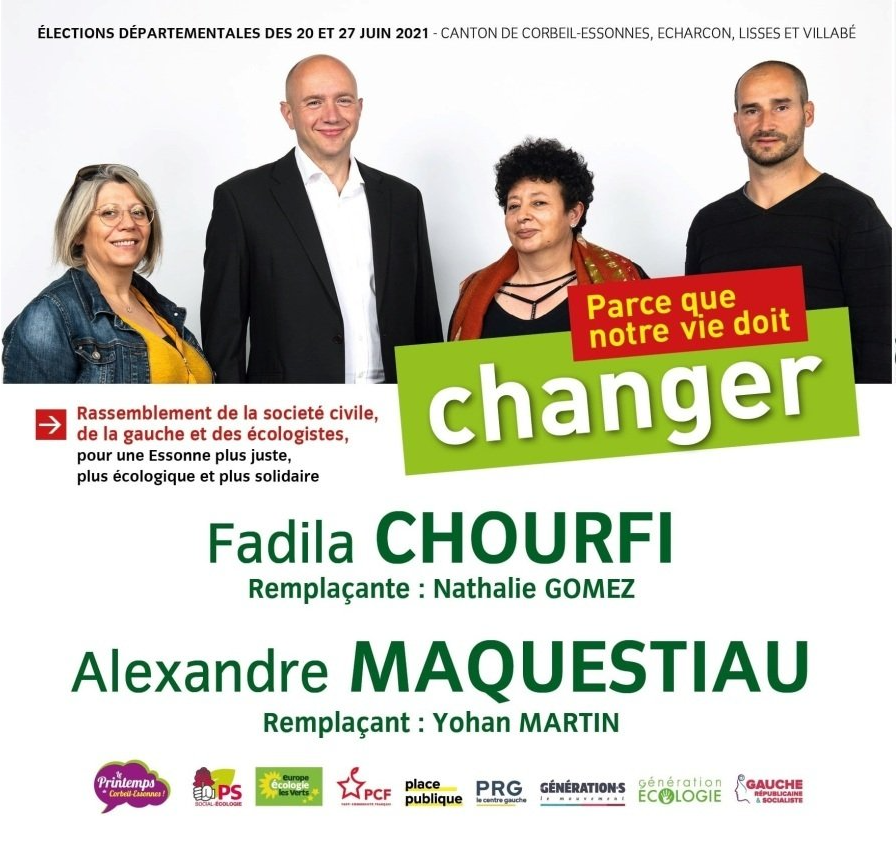 -> Parce que les candidats du rassemblement de la société civile, de la gauche et des écologistes, « Naturellement l’Essonne », Fadila Chourfi, Alexandre Maquestiau, et leurs remplaçants Nathalie Gomez, Yohan Martin défendent des valeurs qui nous sont communes,