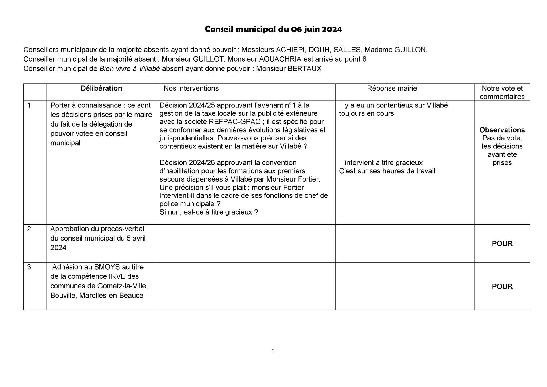 Un conseil municipal a eu lieu le jeudi 06 juin 2024 ?