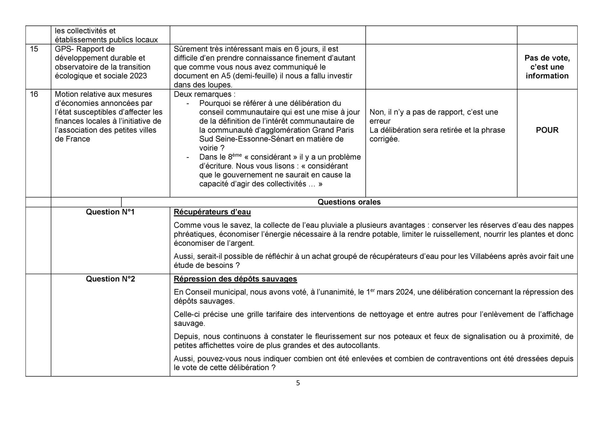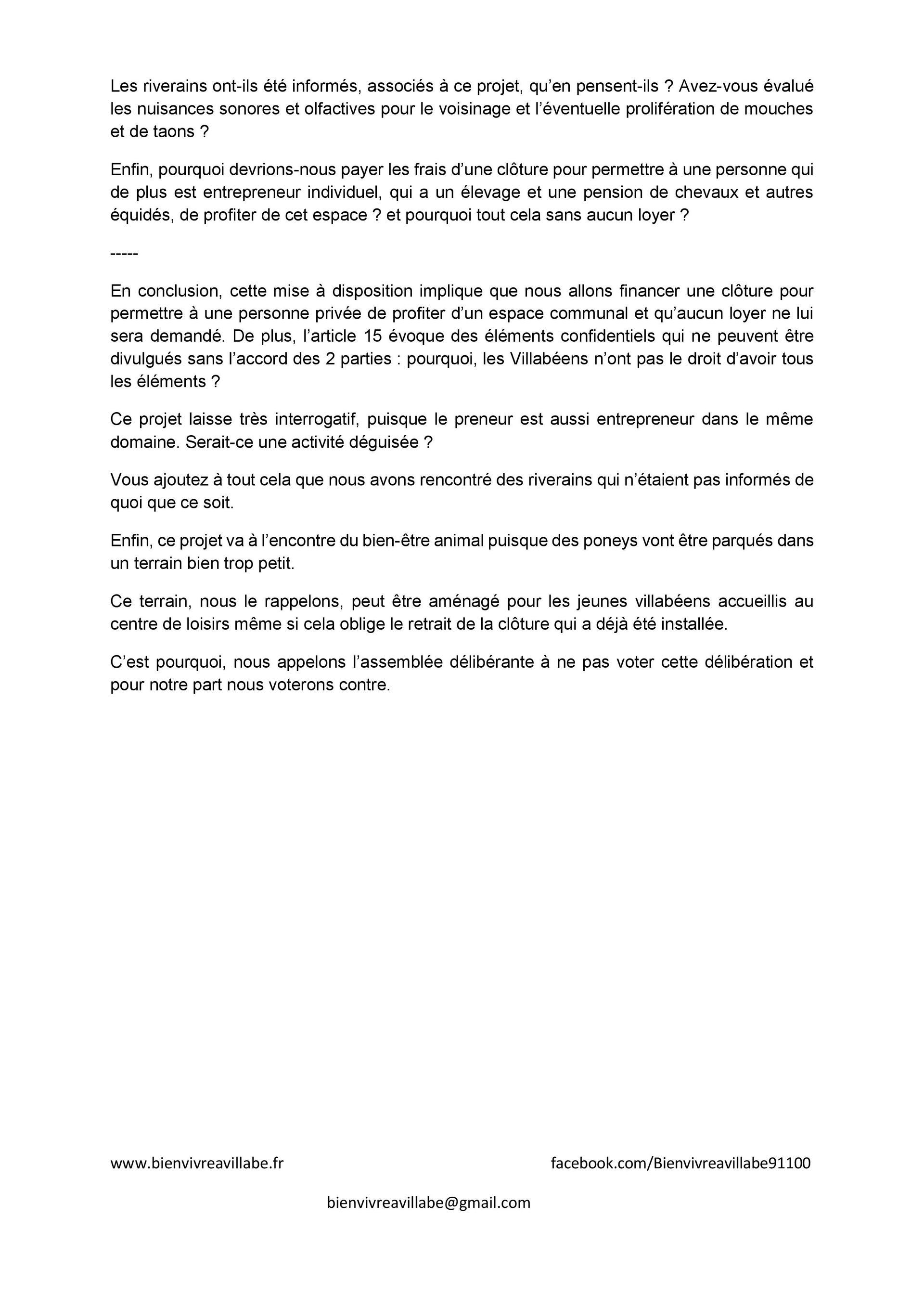De plus, le groupe Bien vivre à Villabé constatant qu’il n’y avait pas de caméra a demandé en début de séance ce qu’il en était de la diffusion et de l’enregistrement sur le YouTube de la mairie.