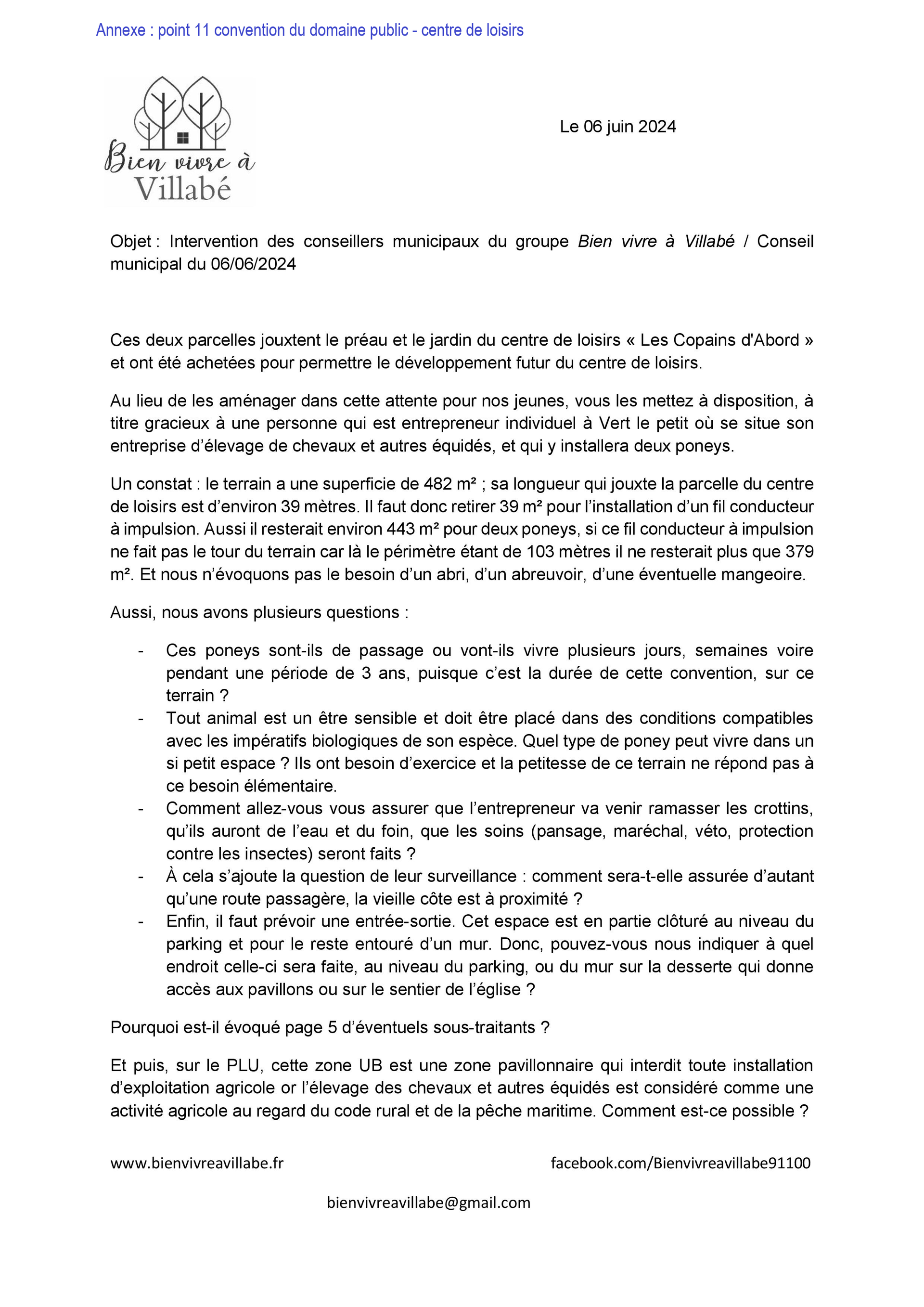 Quant à l’excuse « les logements dont nous avons tant besoin », peut-être faudrait-il se calmer avec le nombre de lotissements qui ont déjà été implantés sur la commune et qui n’accueillent pas que des demandeurs villabéens dormant dans leur voiture comme il est fait trop souvent état !