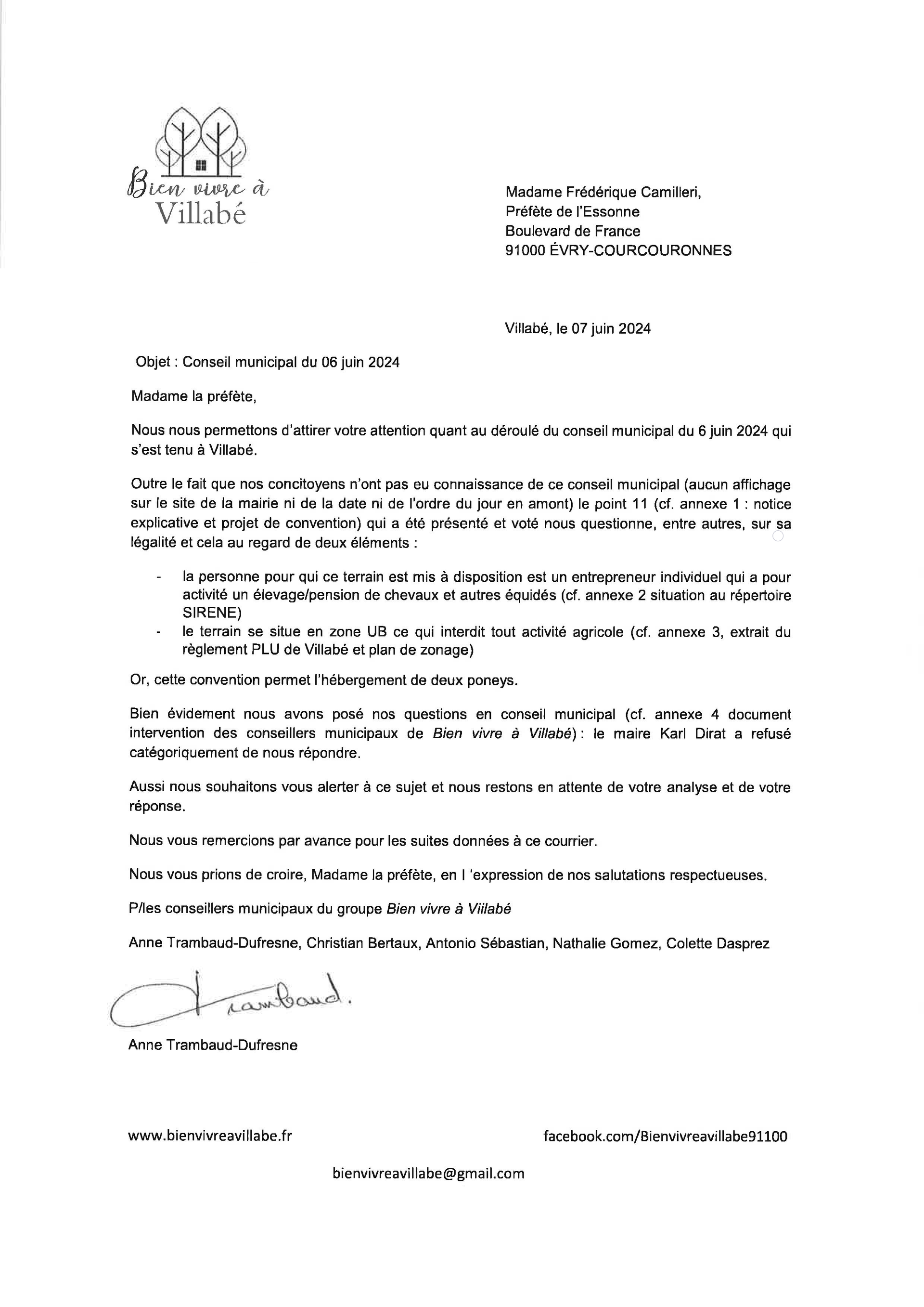 Nous avons donc écrit à la préfète pour exposer cette situation.