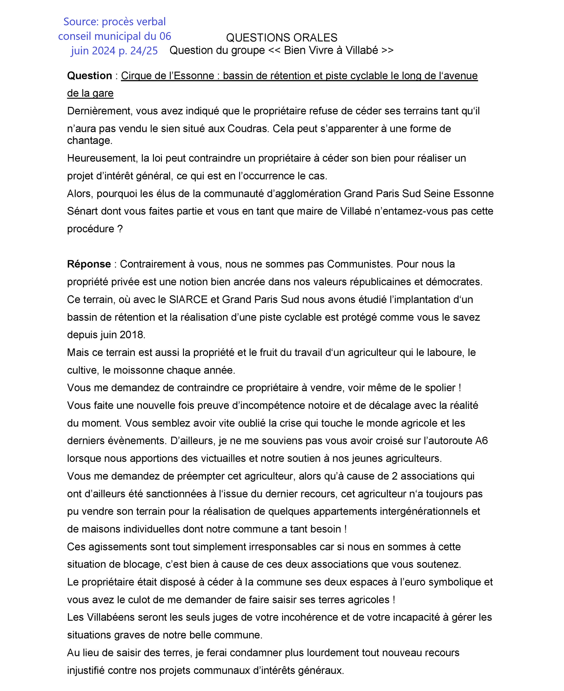 La question : pourquoi les élus de la communauté d’agglomération Grand Paris Sud Seine Essonne Sénart (dont le maire de Villabé fait partie) et ou le maire de Villabé n’utilisent pas la loi qui peut contraindre un propriétaire à céder son bien pour réaliser un projet d’intérêt général ?