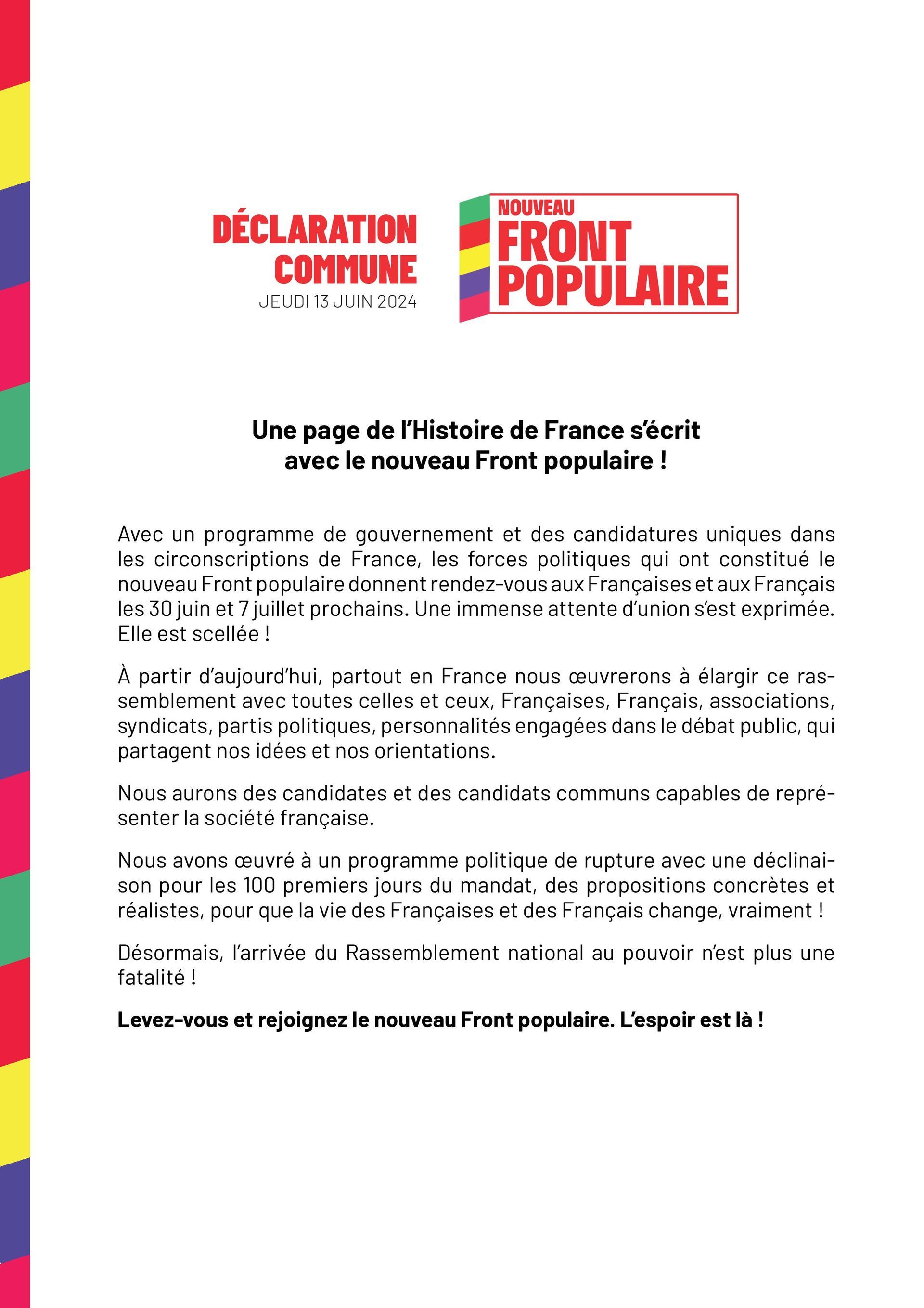 Aussi, il nous faut faire barrage à l’extrême droite et à la macronie car nous n’oublierons jamais la politique de MACRON et ses amis, à base de 49.3, qui nous ont imposé la réforme des retraites, qui ont favorisé et acté la précarisation des jeunes, des plus pauvres, l’inaction climatique, la casse de nos services publics etc.
