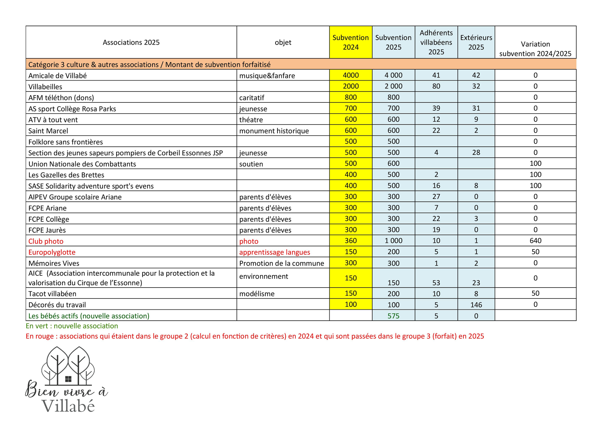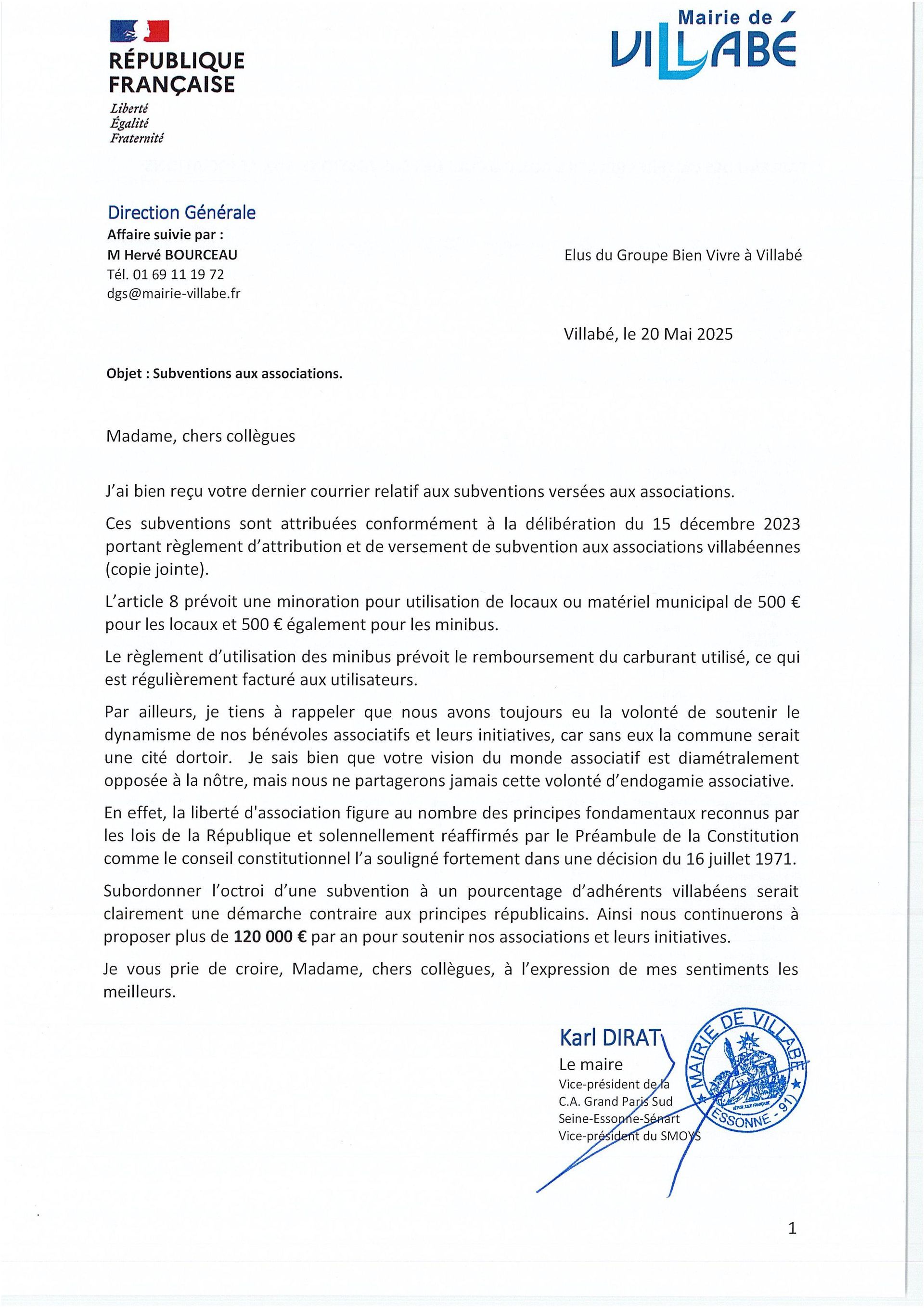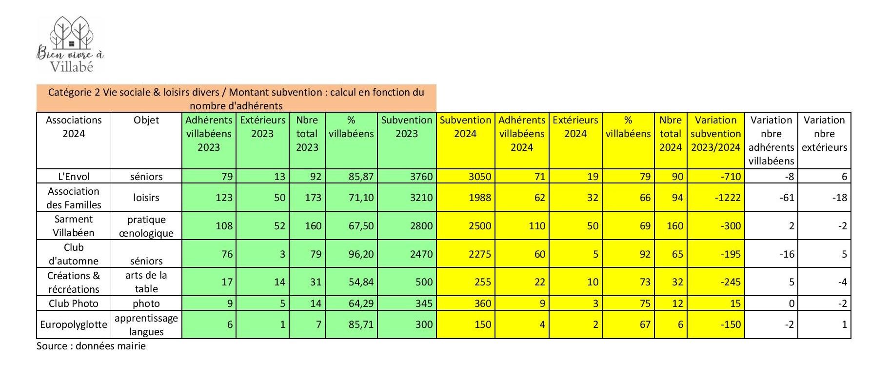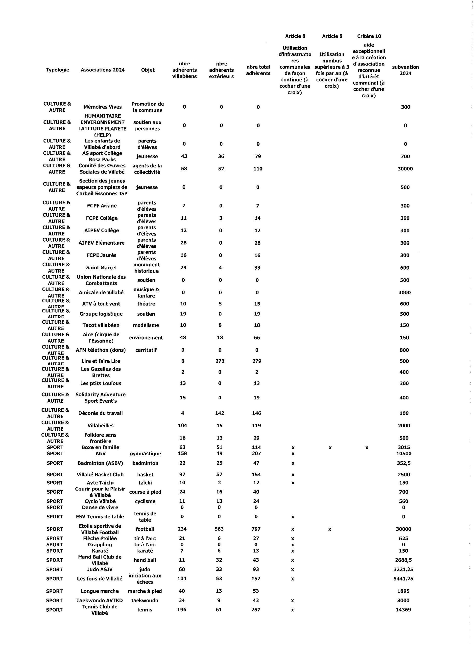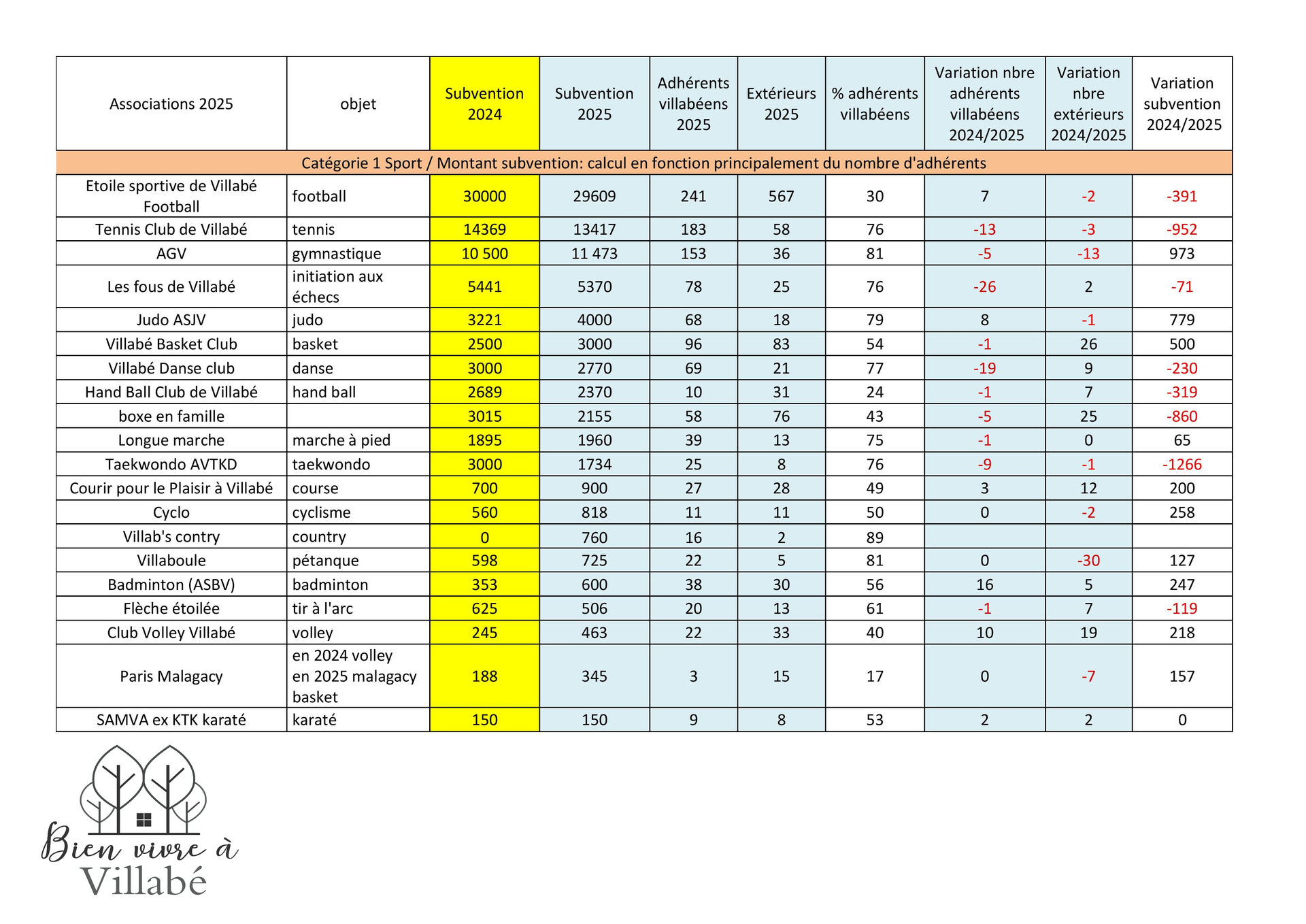 Les associations villabéennes sont attractives et cela est en lien avec le fort investissement des bénévoles et leur travail de qualité, mais, une interrogation demeure : pourquoi le budget communal devrait-il financer pour les adhérents non-villabéens ?