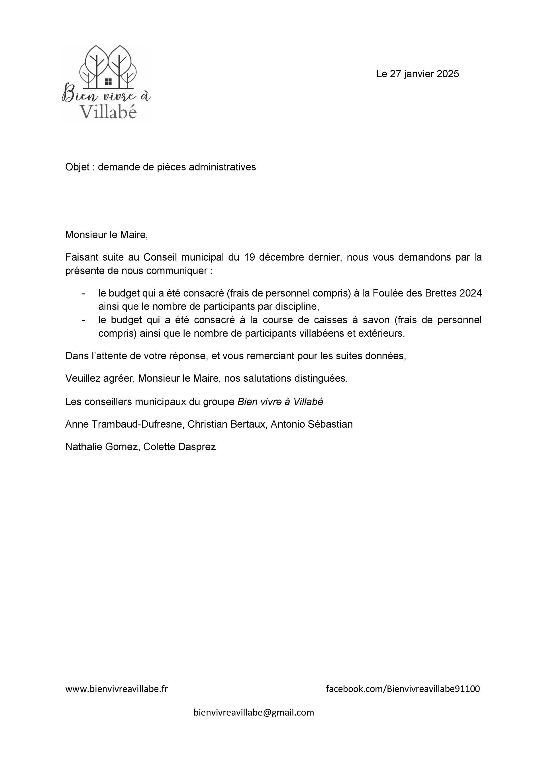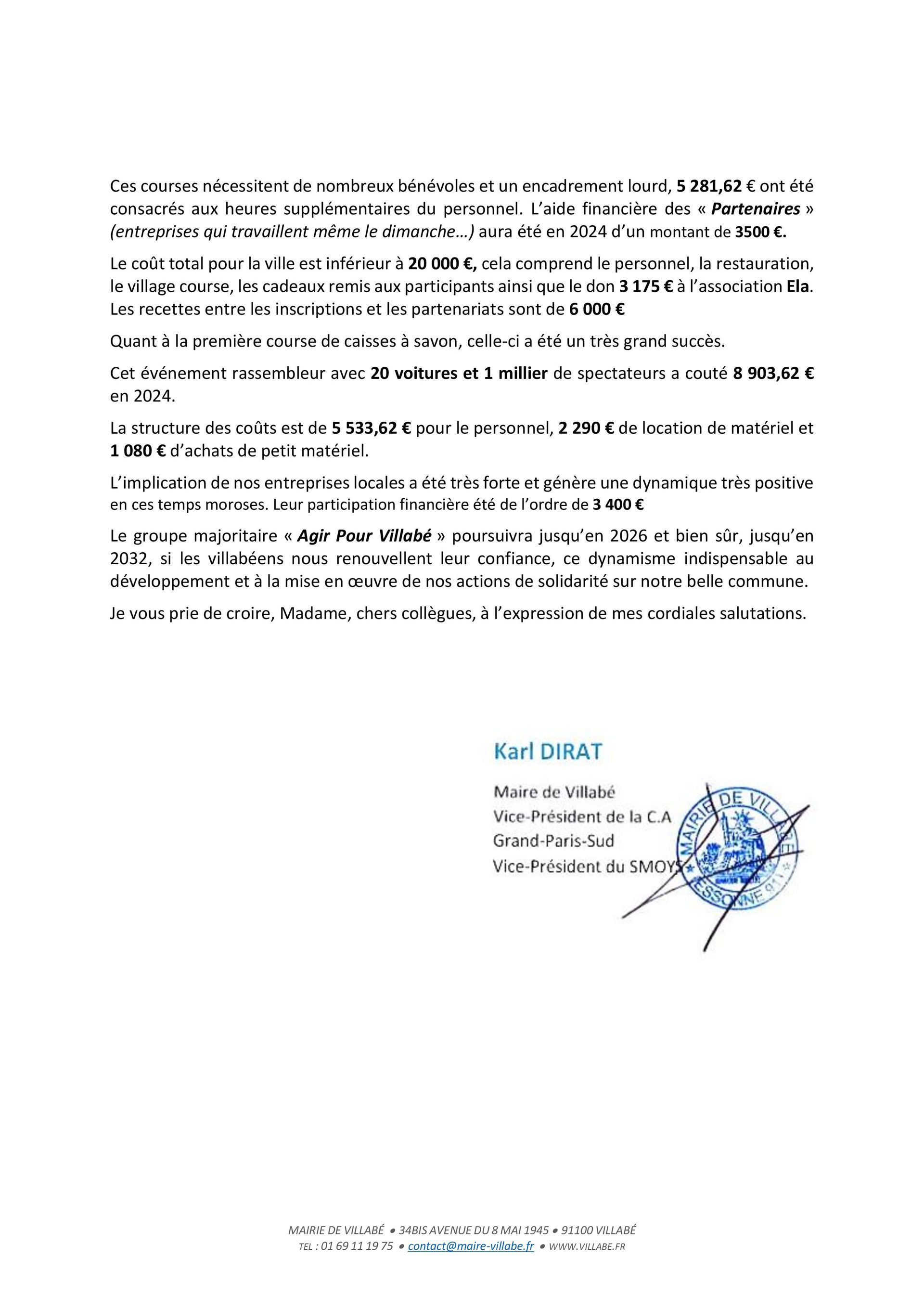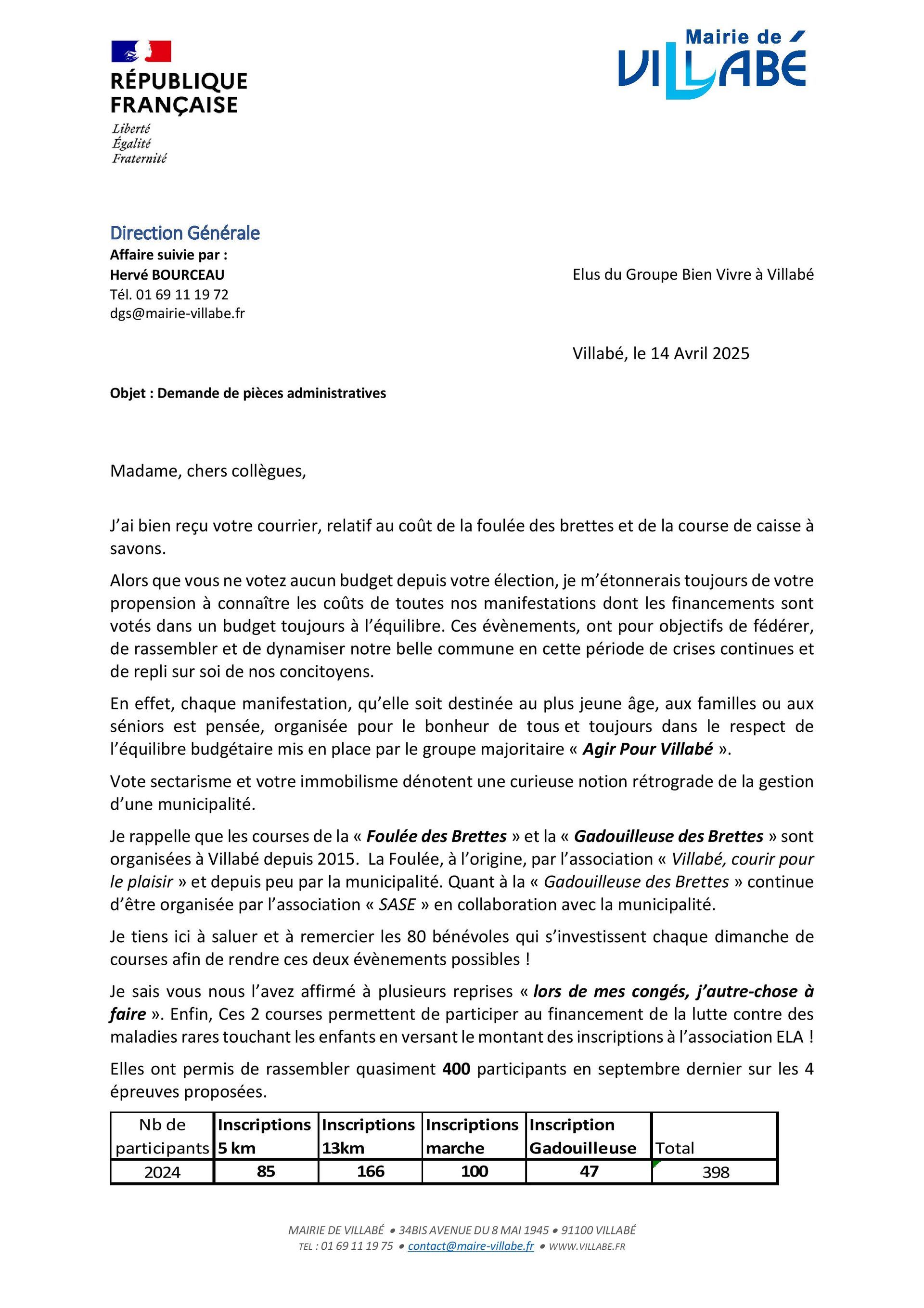 Il lui a été demandé les budgets consacrés à la foulée des Brettes et la course de caisses à savon, ainsi que le nombre de participants.