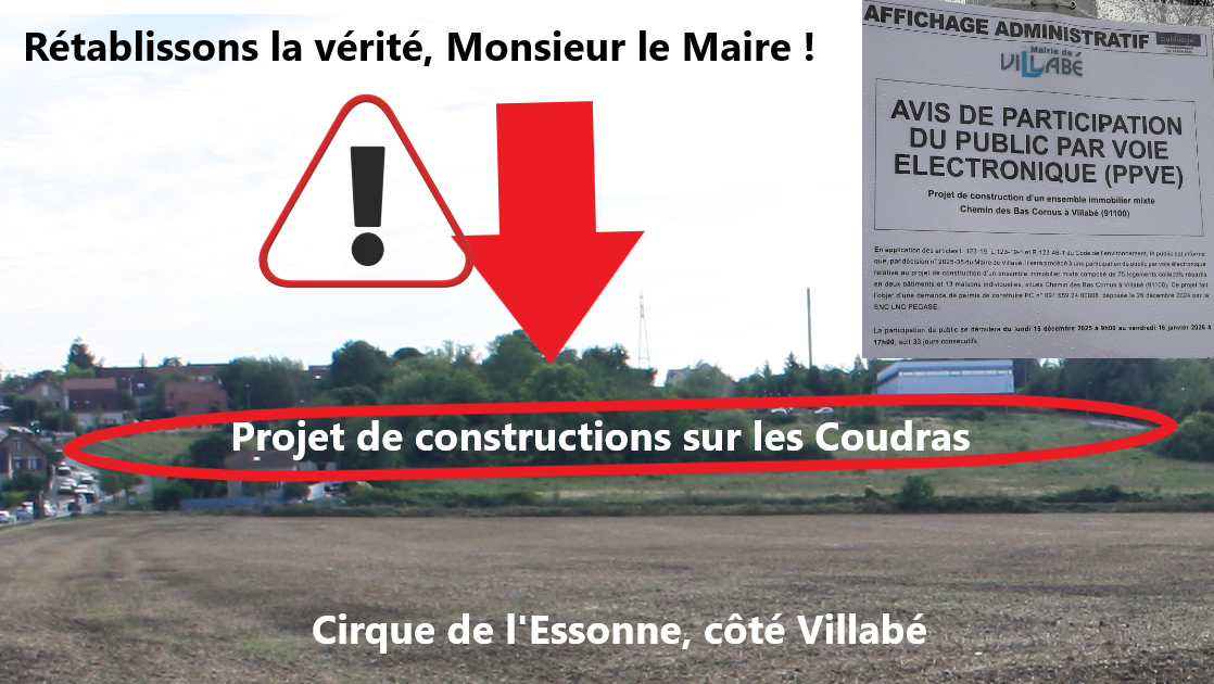 Dans un post en date du 24 décembre, en commentaire, le maire écrit : « Aujourd’hui, j’ai accordé un permis aux nouveaux constructeurs pour 84 appartements et quelques maisons » Il ne sait même pas que le projet « des Coudras » dans le Cirque de l’Essonne concerne la construction de 75 appartements et 13 maisons. Le maître d’œuvre « Atelier Concept » est par ailleurs celui qui avait été mandaté pour le 3ème groupe scolaire.