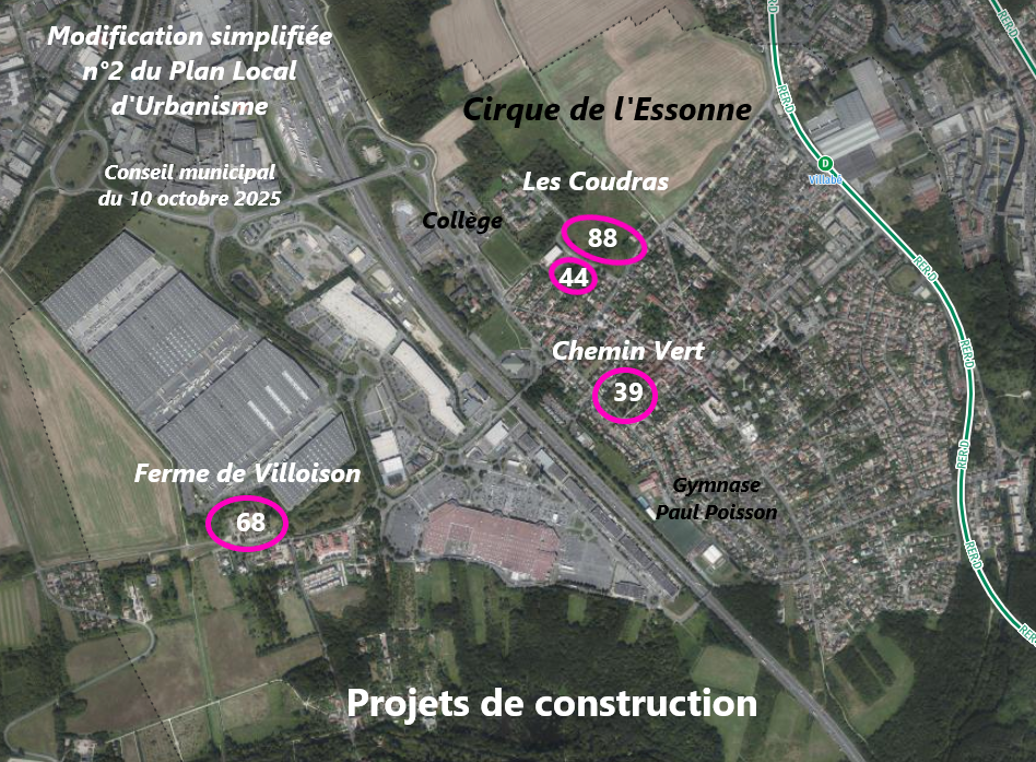 Dans les faits, il faut bien le mettre en conformité avec le projet de construction des Coudras, dans le Cirque de l’Essonne = 88 logements.