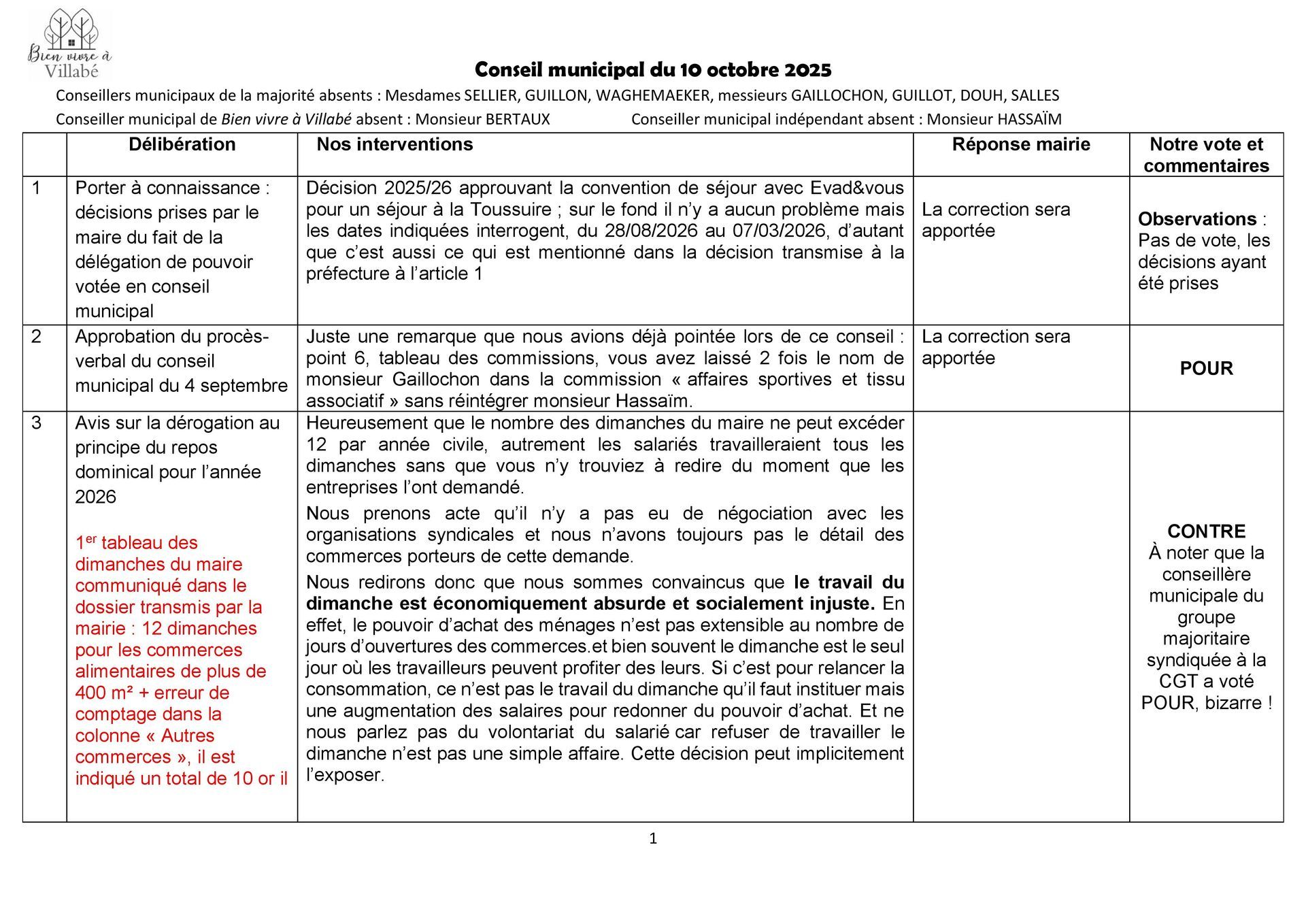 Étant en total désaccord avec cette utilisation de notre argent, les conseillers municipaux du groupe Bien vivre à Villabé ont voté CONTRE cette délibération et comme à son habitude, aucun commentaire, aucune réponse de la majorité municipale, silence radio !