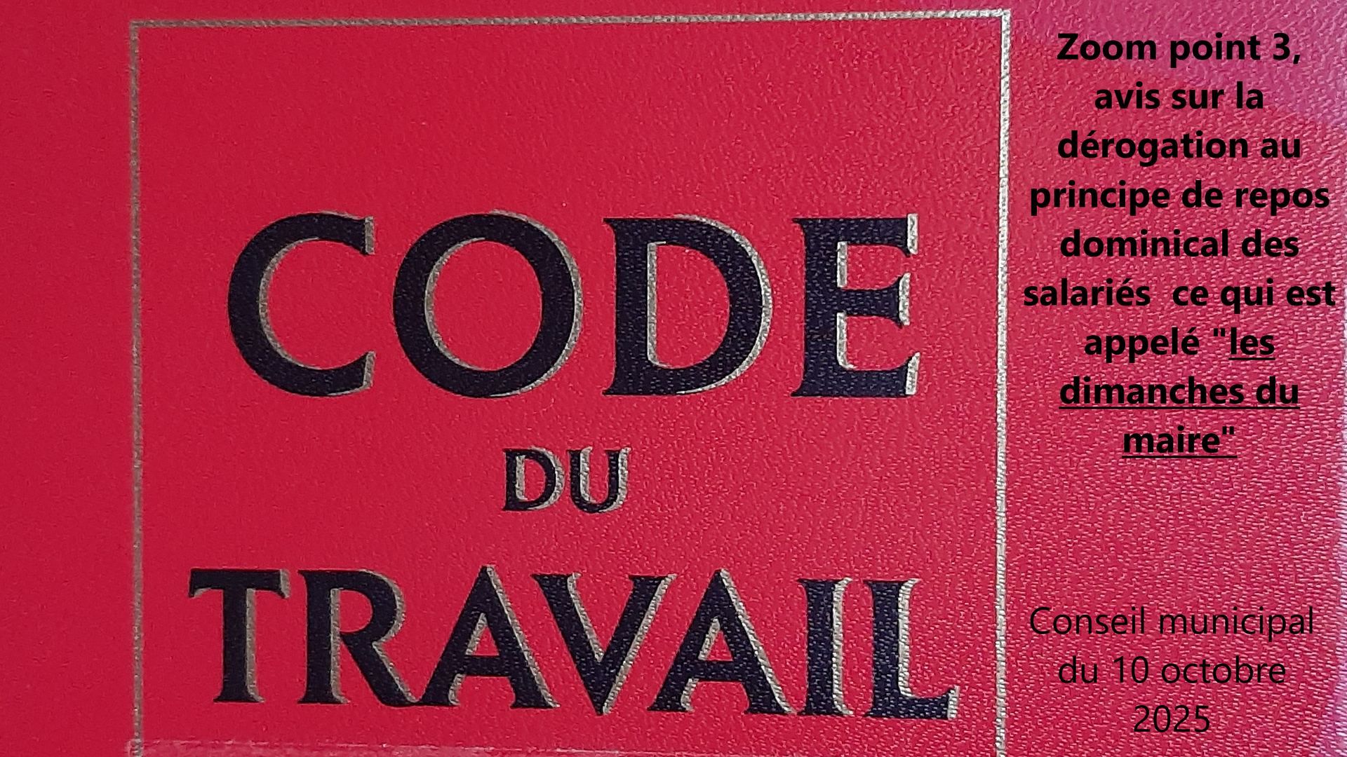 Zoom point 3 : Avis sur la dérogation au principe du repos dominical ( 1ère partie) 28/10/2025