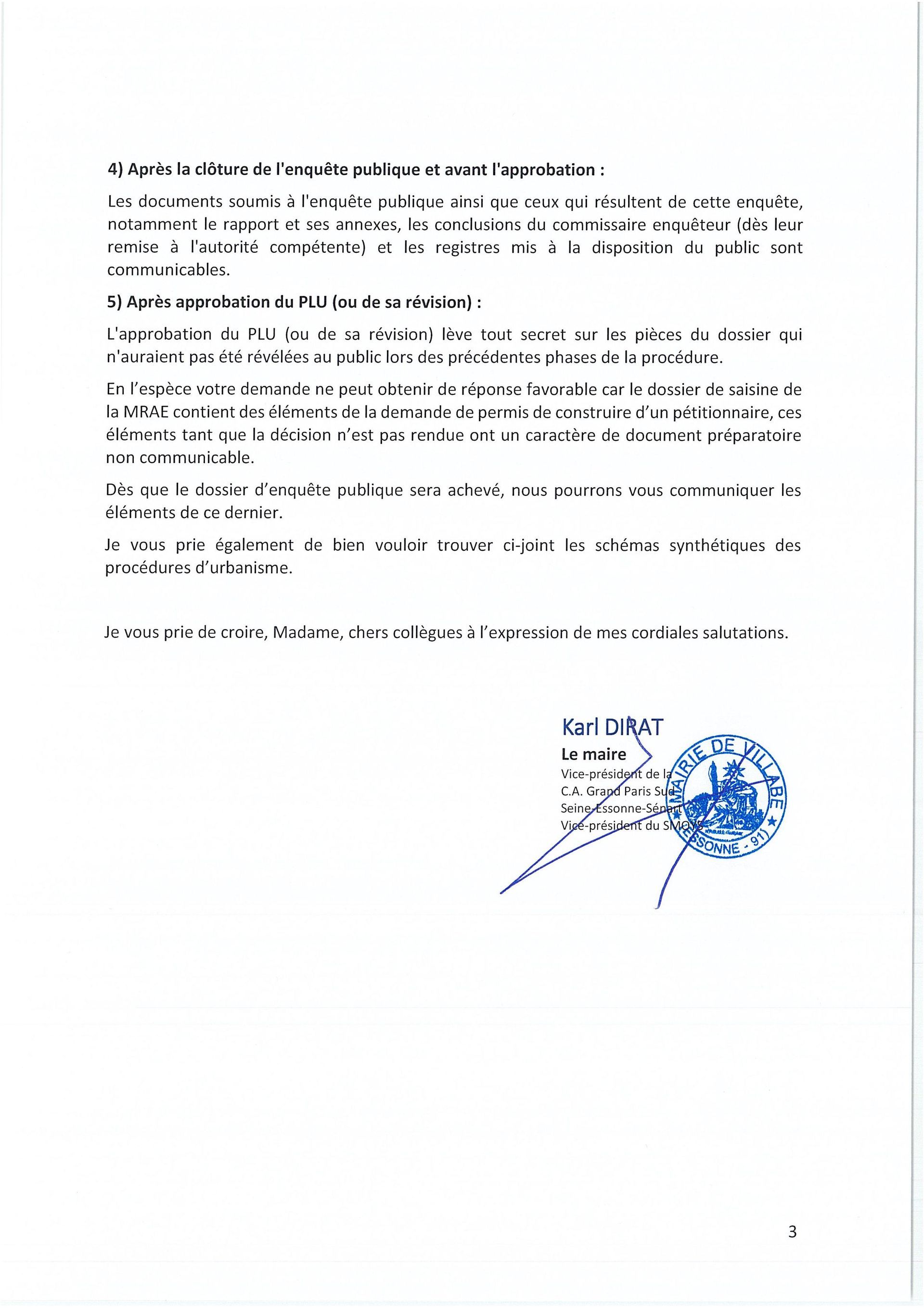 Cependant les conseillers municipaux de Bien vivre à Villabé ont en parallèle saisi la MRAe avec la même demande, et …. le dossier leur a été communiqué !