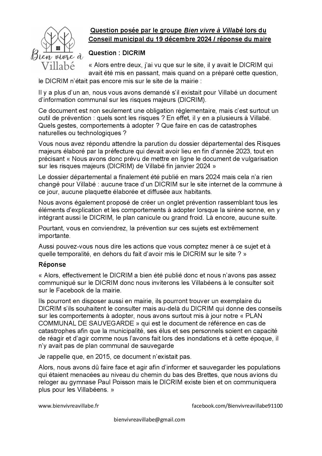 Certes, le Document d’information communal sur les risques majeurs a été mis sur le site de la mairie. Mais quel dommage qu’il ait été travaillé de façon unilatérale car si une équipe projet avait été constituée pour l’élaborer, cela se serait ressenti dans la qualité du document final. Mais il n’a pas fait l’objet d’une concertation avec les Villabéens ni avec notre groupe. Comment dans ces conditions en garantir l’appropriation par les habitants lorsqu’il n'y a aucune stratégie de diffusion ?