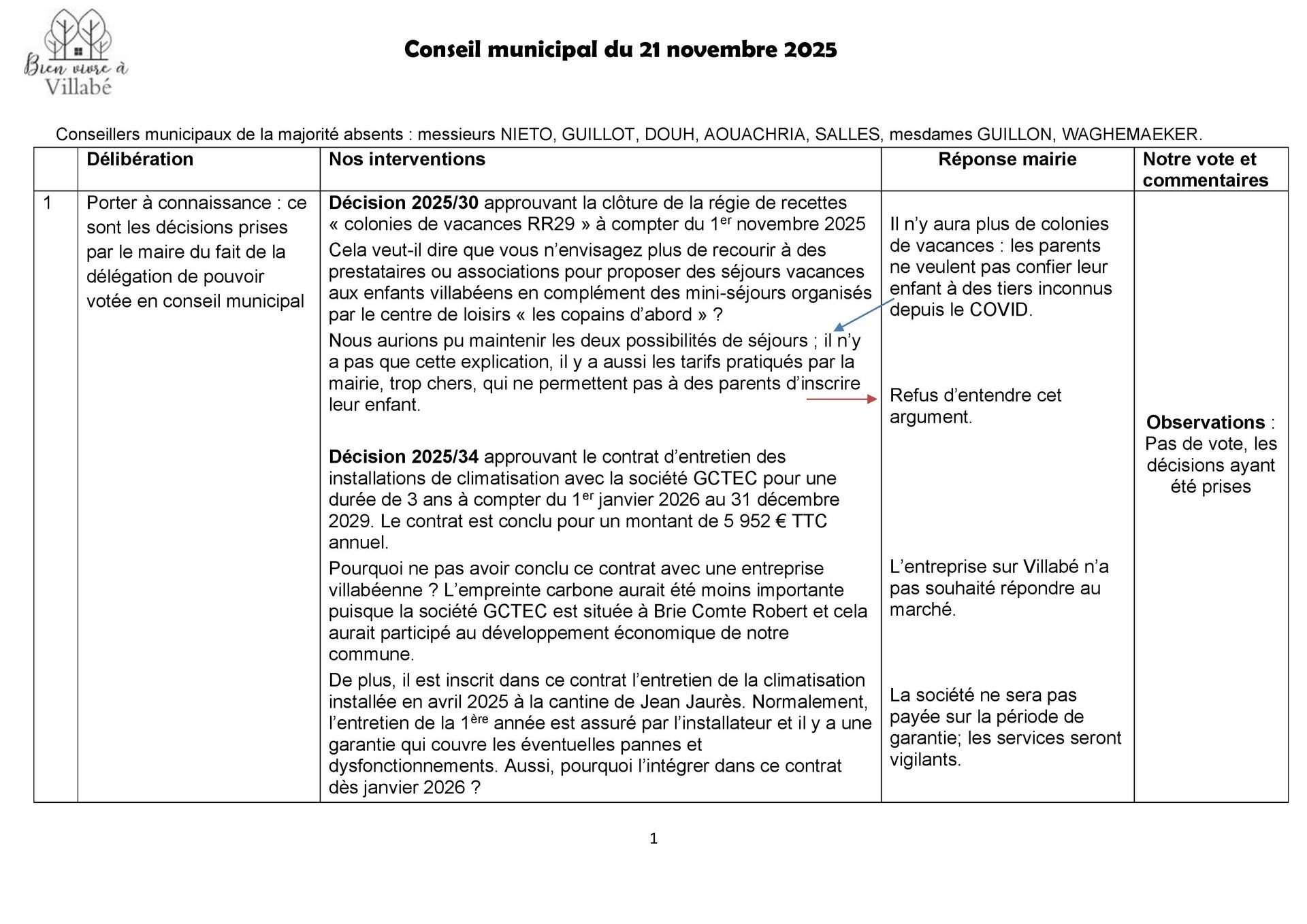 Notre suggestion a été rejetée par le maire et la majorité municipale.