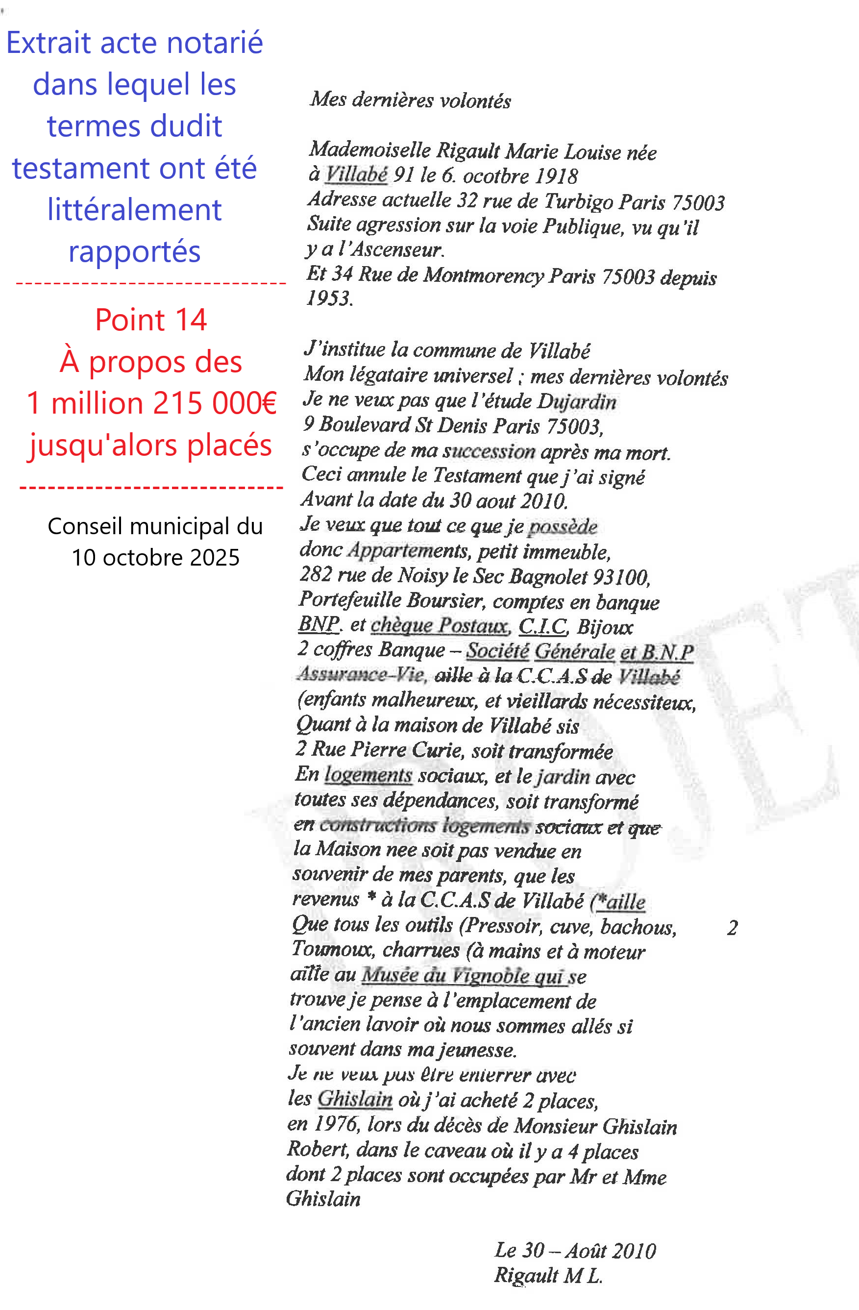 Point 14 le legs de Mme RIGAULT va renflouer les caisses de la commune !
