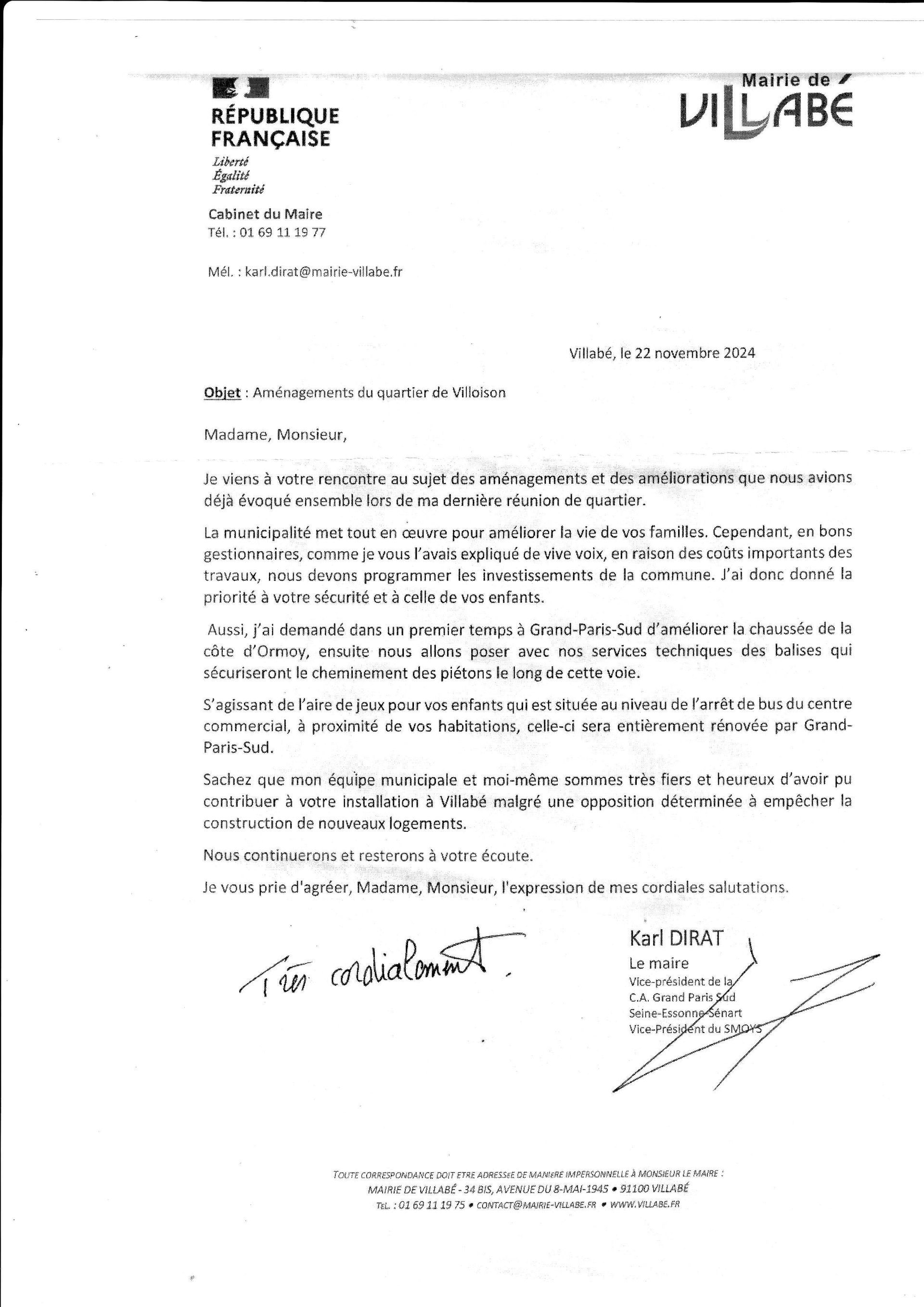 Le maire de Villabé est en campagne … Peu de temps après la réception de notre courrier qui parle d’anticipation de nouveaux besoins pour le quartier de Villoison… le voici qui, enfin, décide de sécuriser la côte d’Ormoy pour les piétons, demande que le groupe Bien vivre à Villabé n’a eu de cesse de porter depuis 2021 ...mais mieux vaut tard que jamais !!