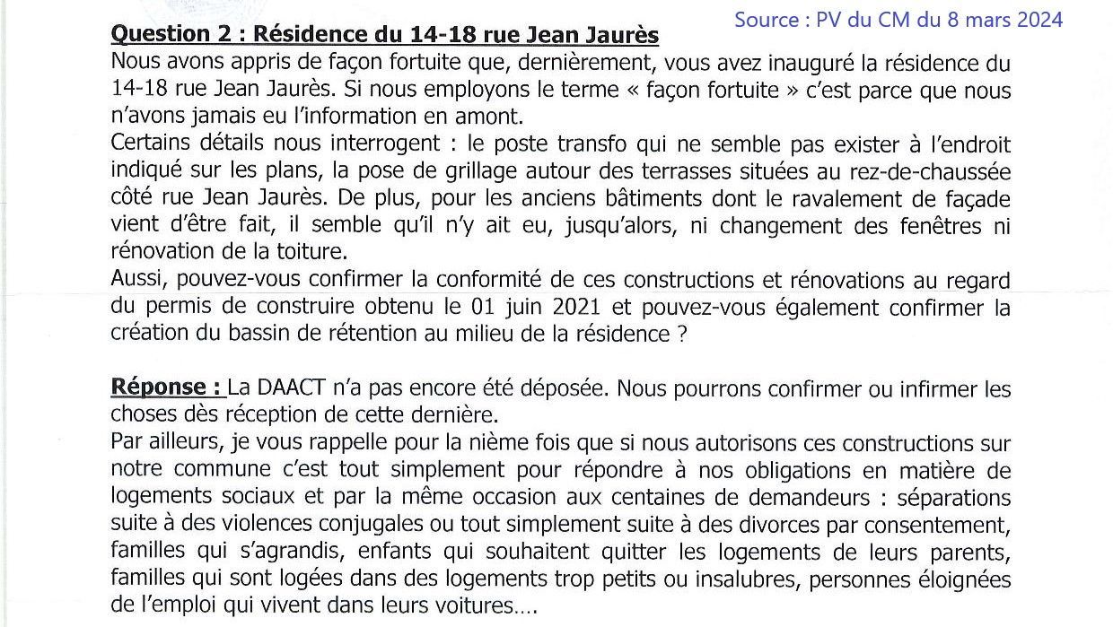 Question / Réponse : Résidence du 14 -18 rue Jean Jaurès, conformité des constructions ?