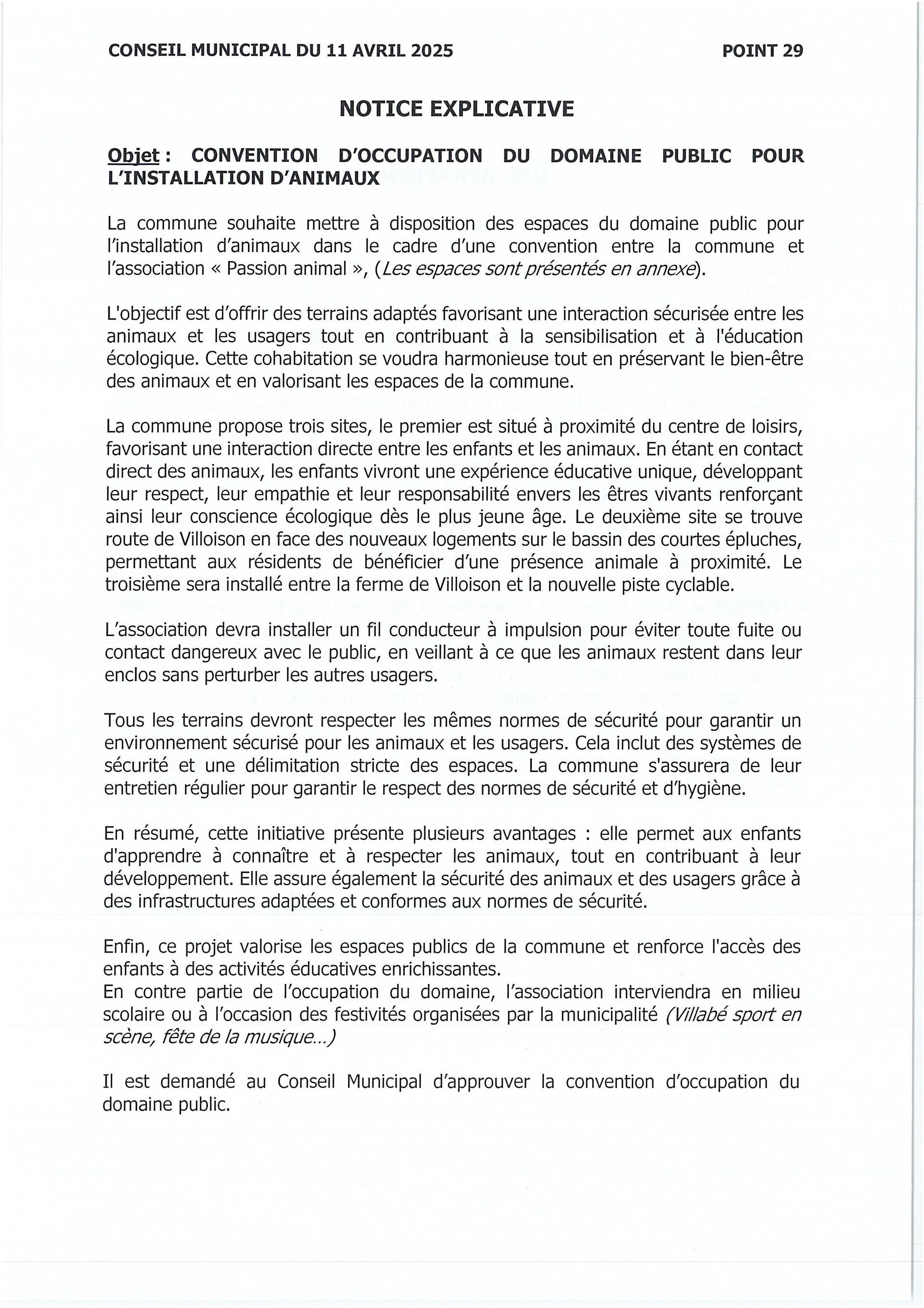 Conseil municipal du 11 avril 2025 / Convention avec "Passion Animal" retirée...