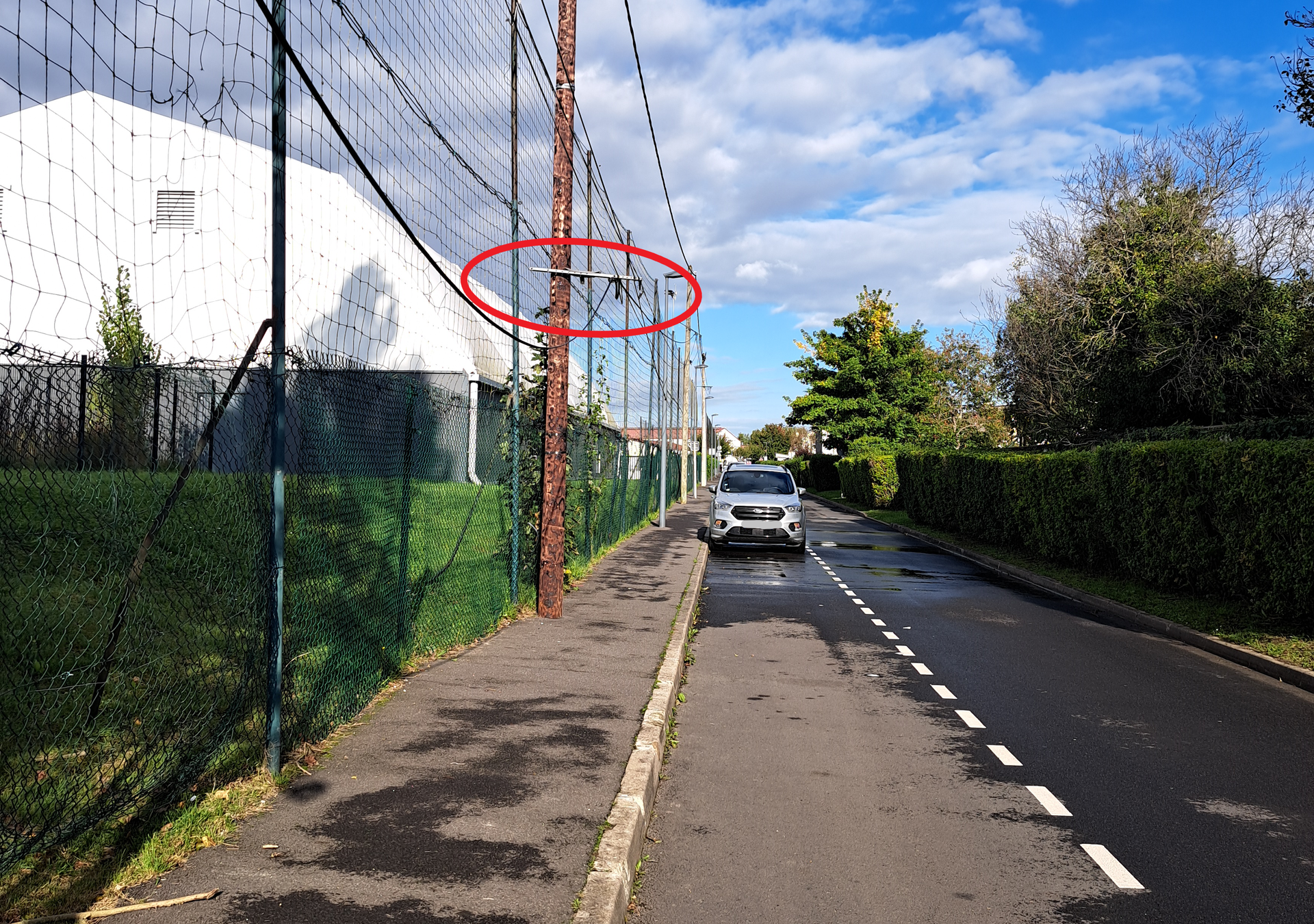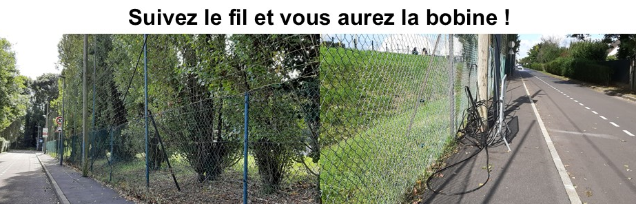 Un fil s’est décroché des poteaux et se retrouve sur le trottoir, rue du chemin vert car la barre de fixation s'est détachée et ne tient que grâce à la tension des autres fils. La faute à qui ? Sûrement les bourrasques de vent de jeudi dernier …