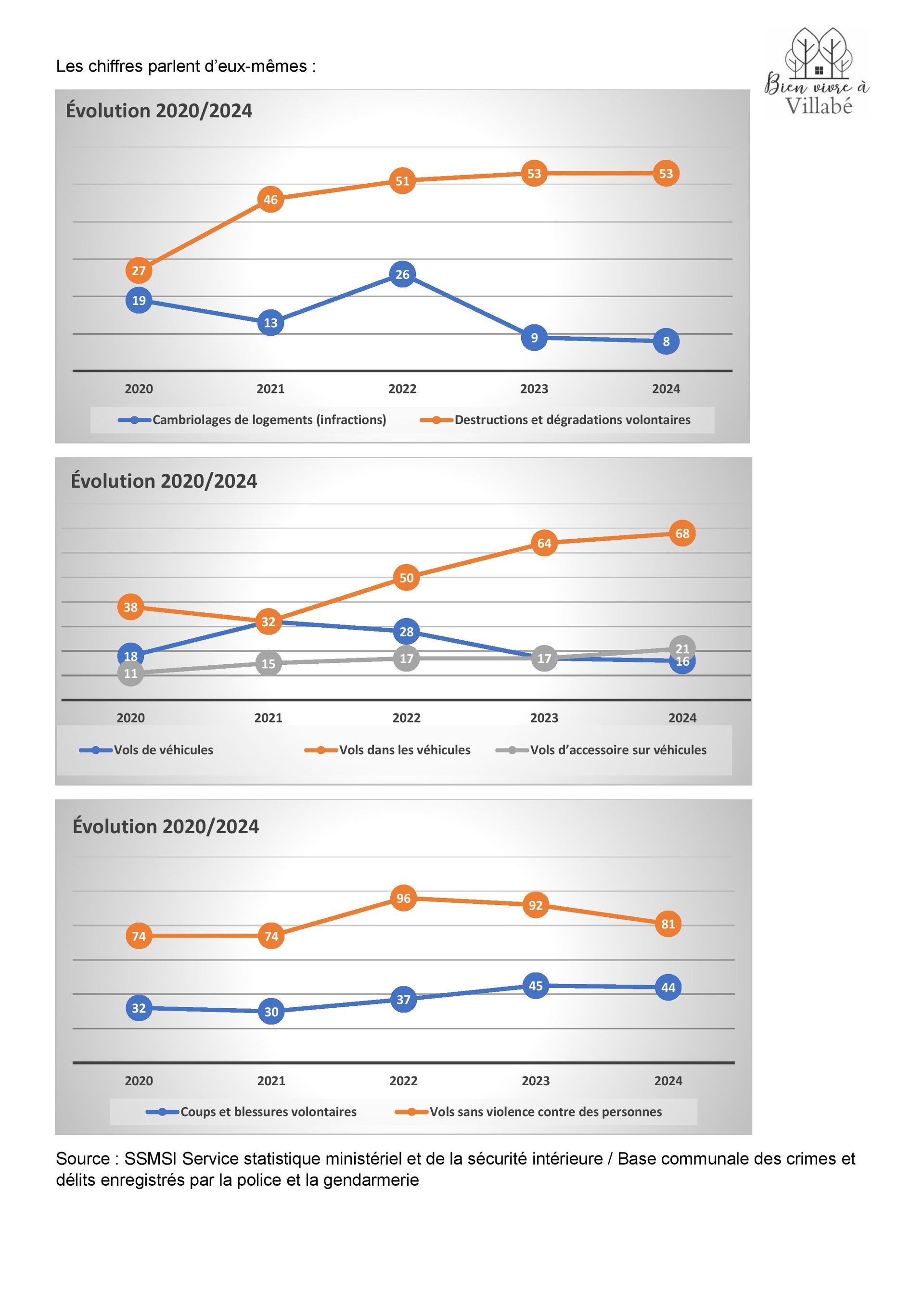 Car Villabé, ce n’est pas Chicago !! Et, si l’on y regarde de plus près, l’installation de ce système n’a pas modifié la donne en matière de délinquance … Plus de vols dans les véhicules, moins de cambriolages et le reste des délits est stationnaire.