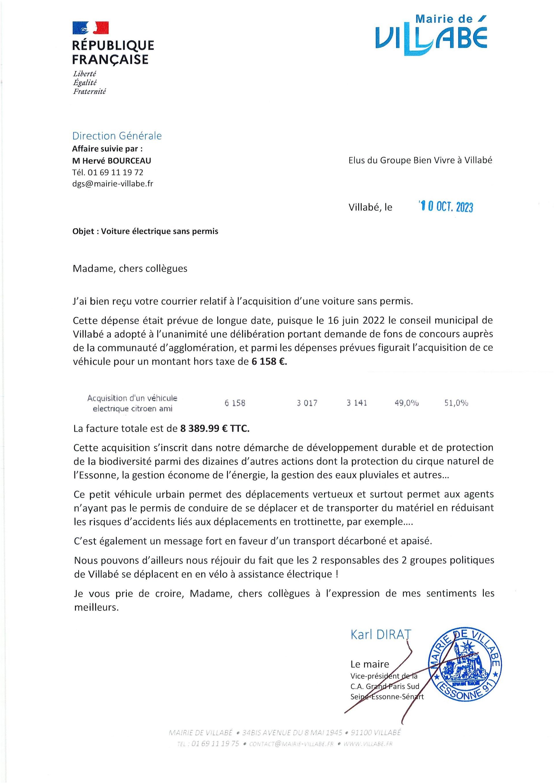 Nouvelle trouvaille de l’équipe majoritaire : l’achat d’une petite voiture électrique sans permis Citroën (AMI) pour le service des sports. Réponse du maire