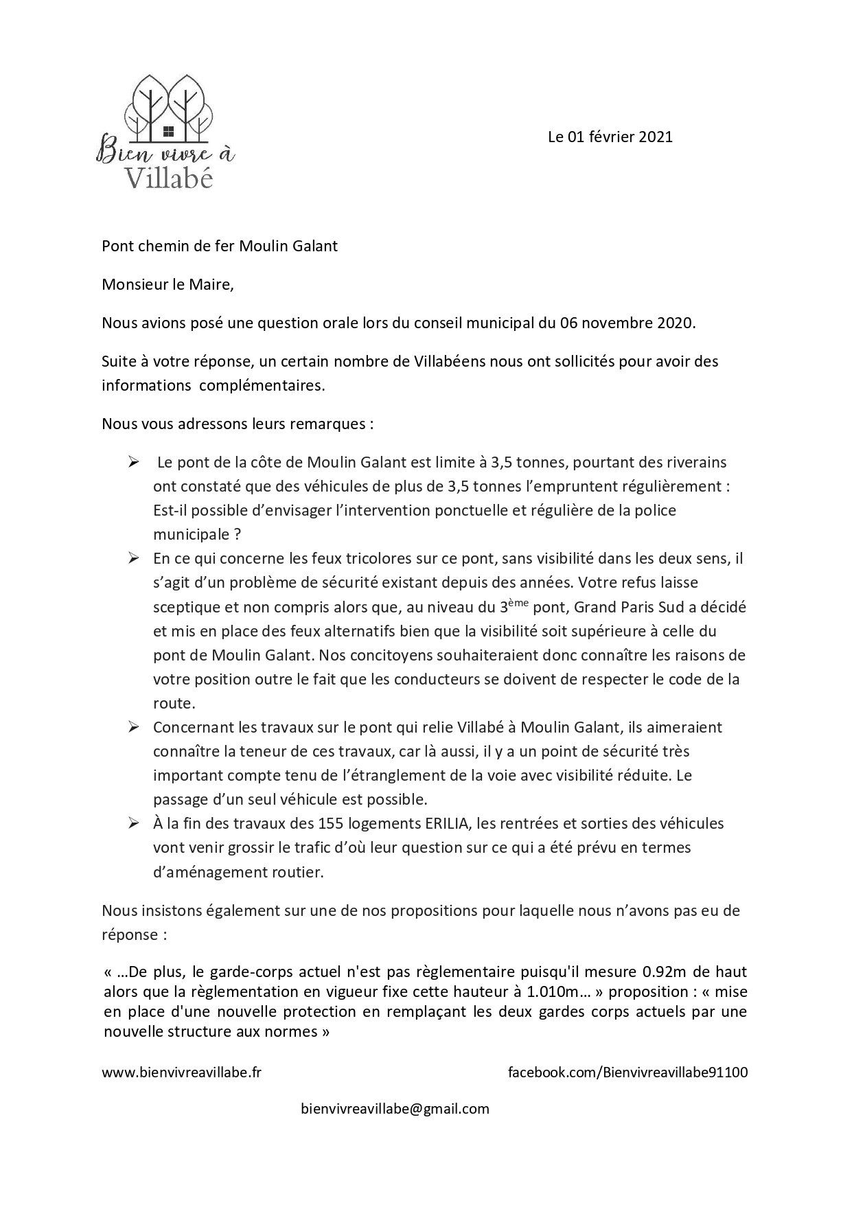 Il y a quelques semaines, vos élus de Bien vivre à Villabé ont à nouveau interrogé le maire sur le pont de chemin de fer côte de Moulin Galant en insistant sur le problème de sécurité existant et ont abordé les inquiétudes des habitants quant à la circulation qui s’accroit.… En commentaire, vous trouverez sa réponse. Et depuis peu, le garde-corps a été enfoncé et une barrière installée… Il y a donc bien urgence à intervenir !