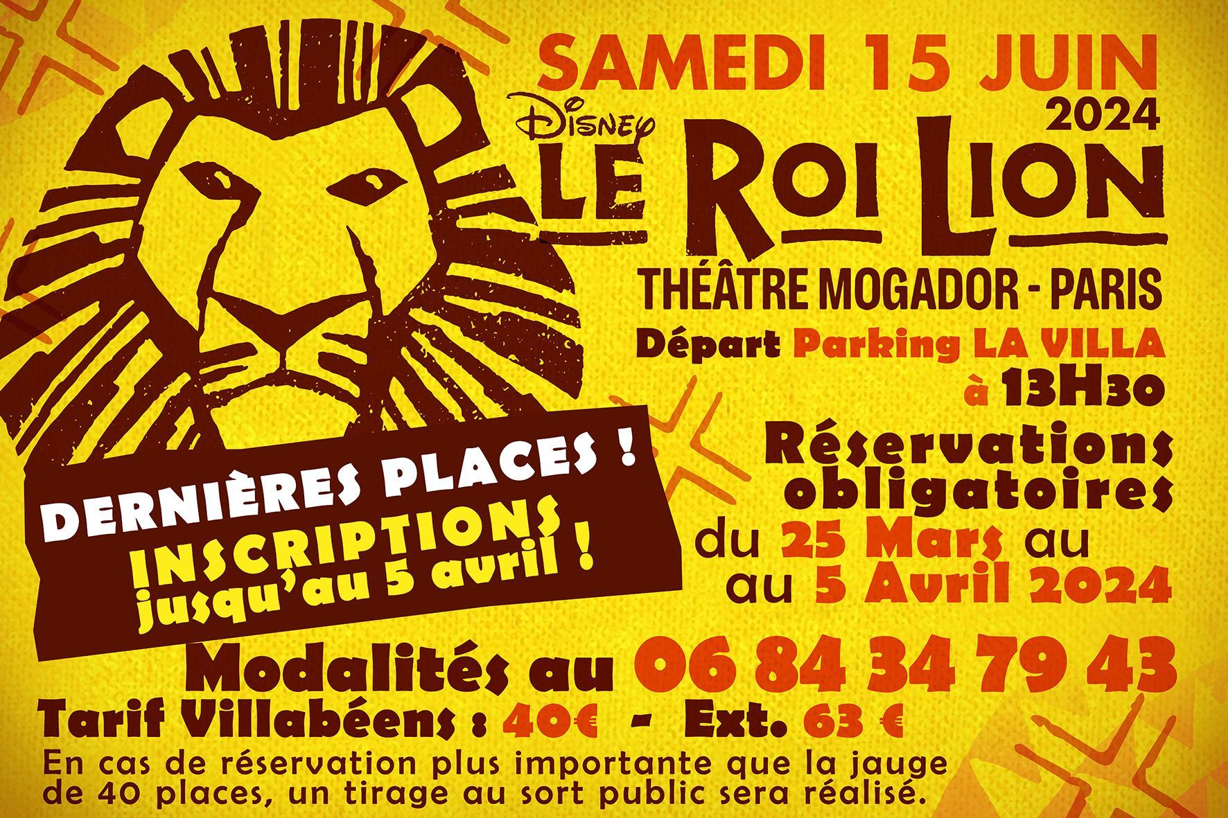 Zoom fixation des tarifs pour la sortie Le roi lion de juin 2024.