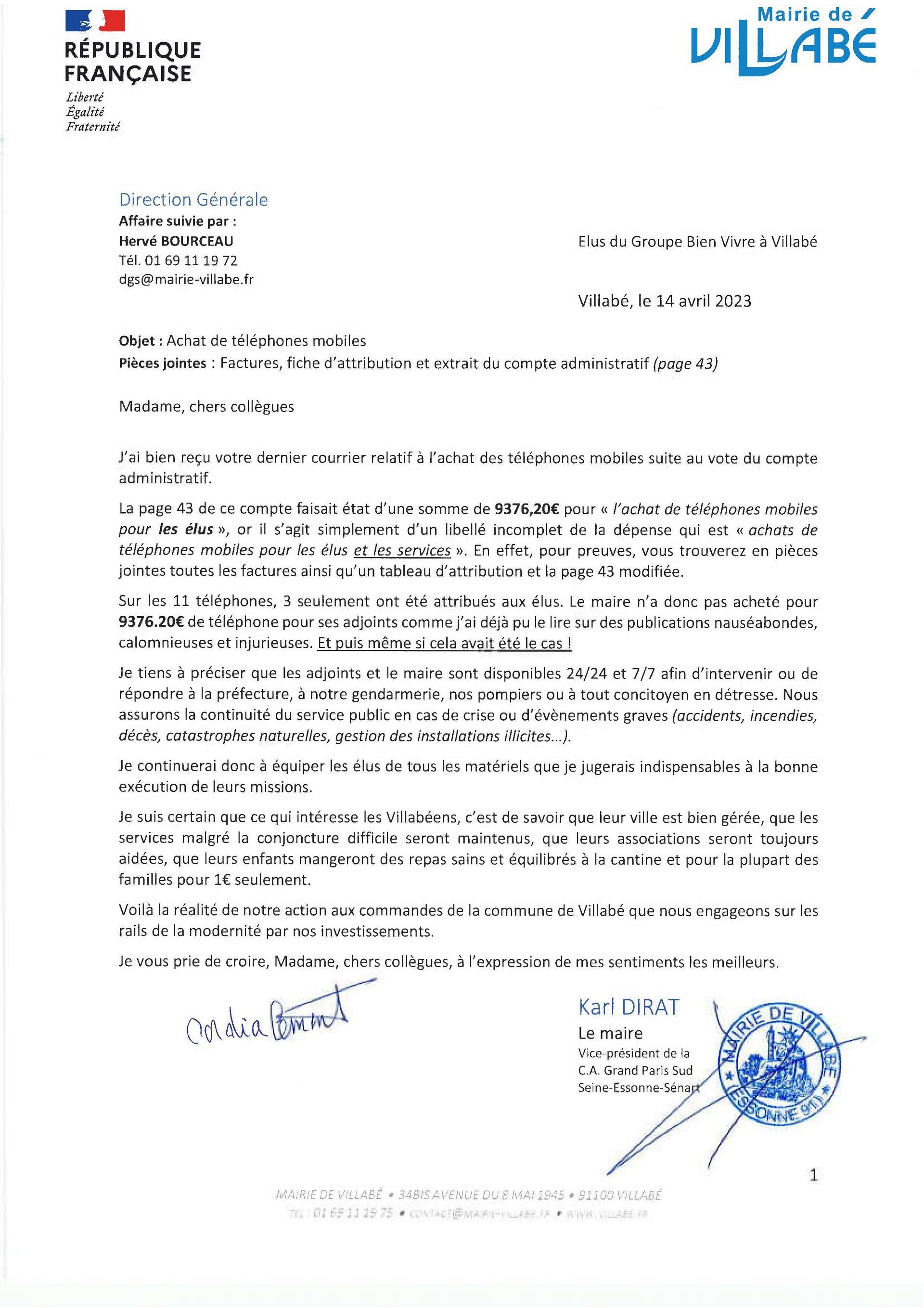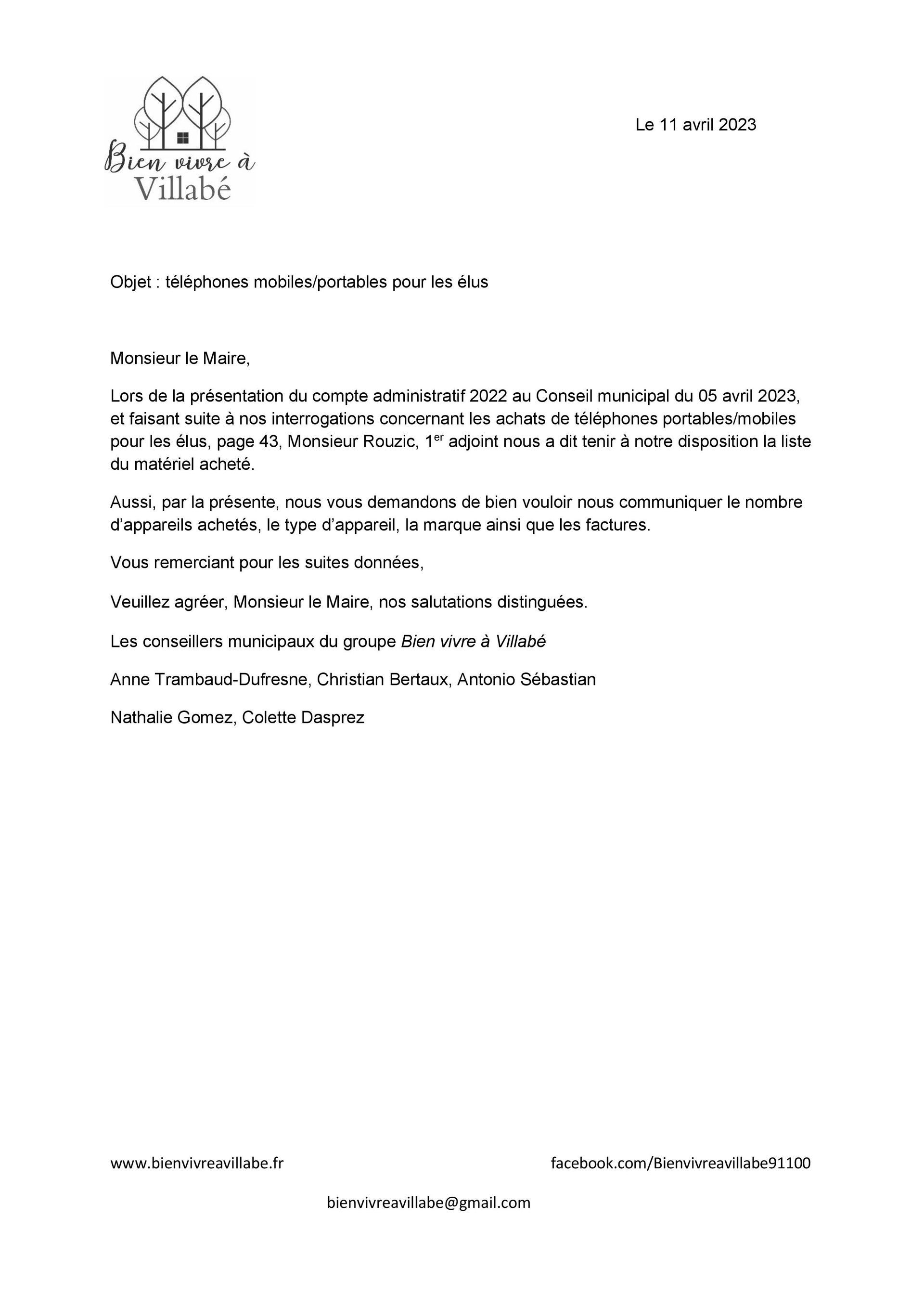Celui-ci explique que ces téléphones sont achetés pour les adjoints en lien avec l’astreinte et ajoute que ces achats étaient indispensables car certains adjoints n’avaient pas de téléphones portables…Mais alors eux aussi vivaient à l’époque des cavernes ! Comme Villabé avant l’arrivée du maire actuel !!
