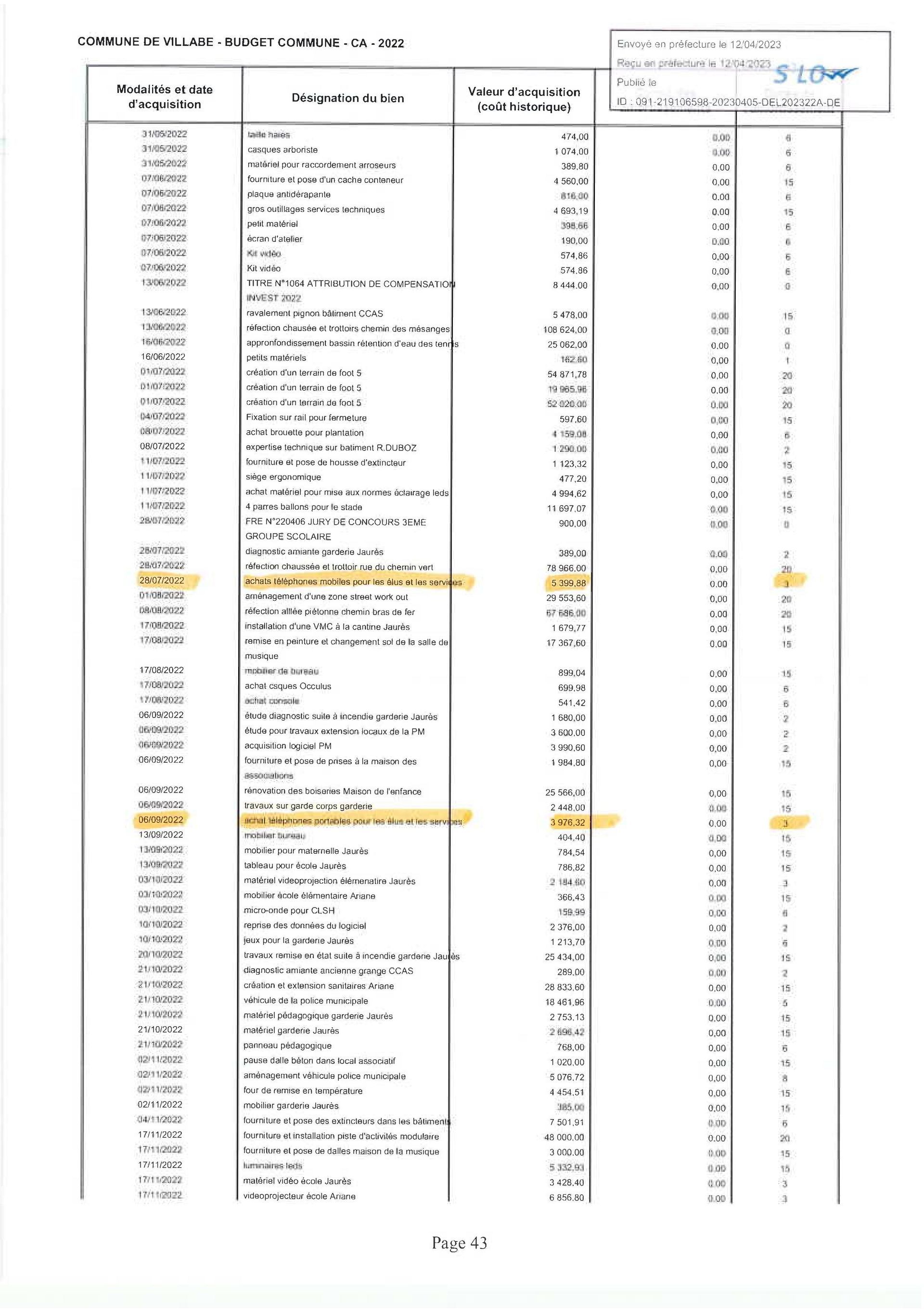 06/09/2022 achat téléphones portables pour les élus 3 976.32€ »