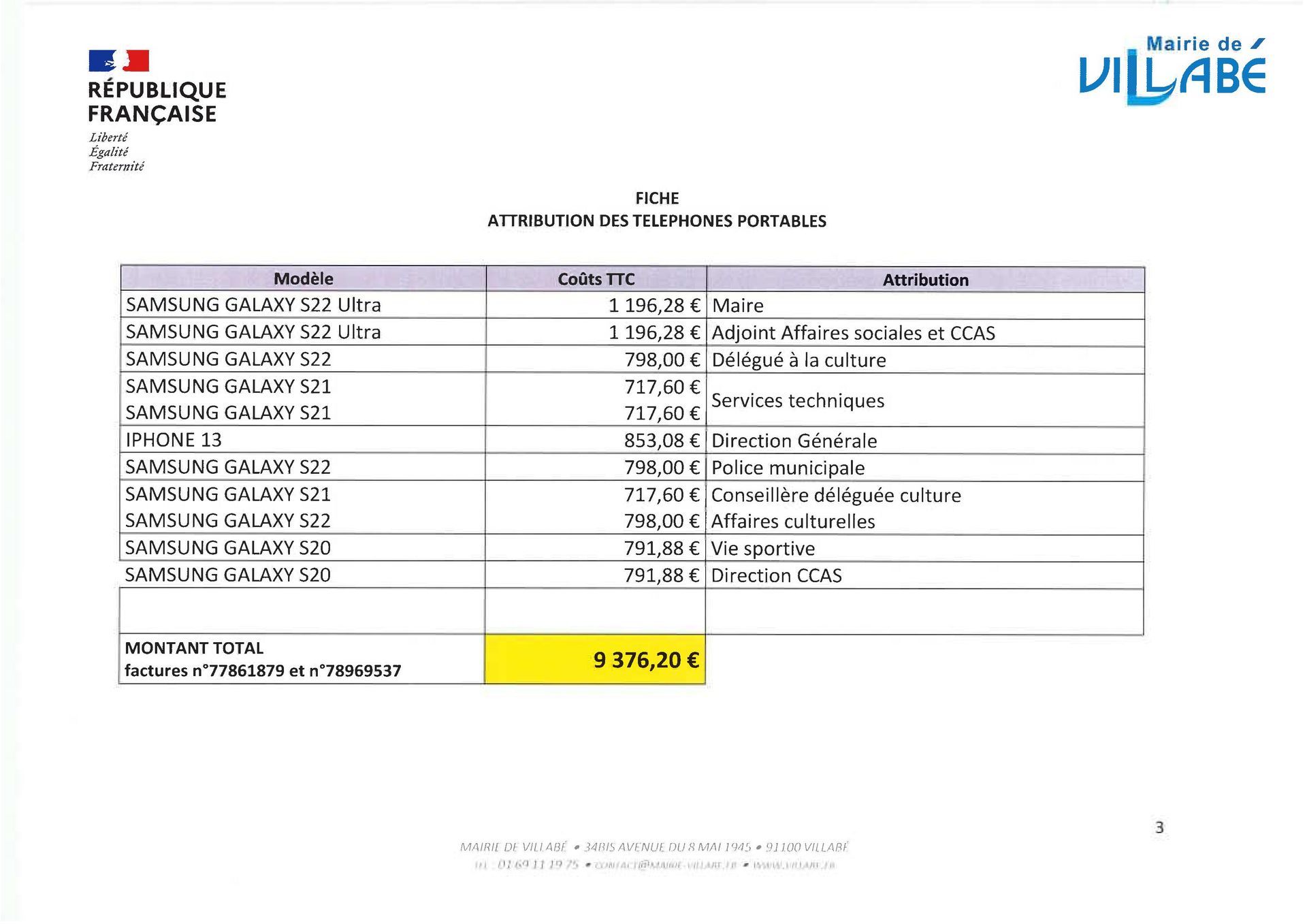 « 28/07/2022 achats téléphones mobiles pour les élus 5 399.88€