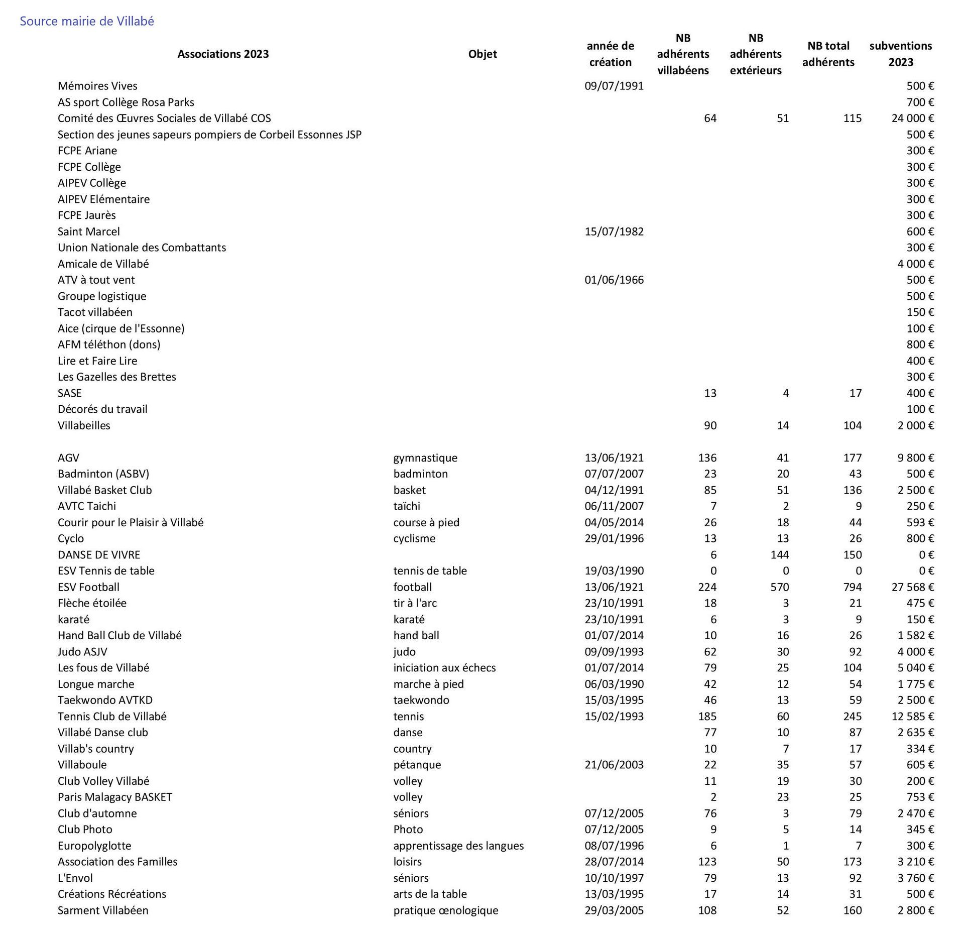 Quelques bizarreries repérées… aussi les conseillers municipaux de Bien vivre à Villabé ont demandé, entre autres, le nombre d’adhérents villlabéens et le nombre d’adhérents extérieurs pour chaque association recevant une subvention.