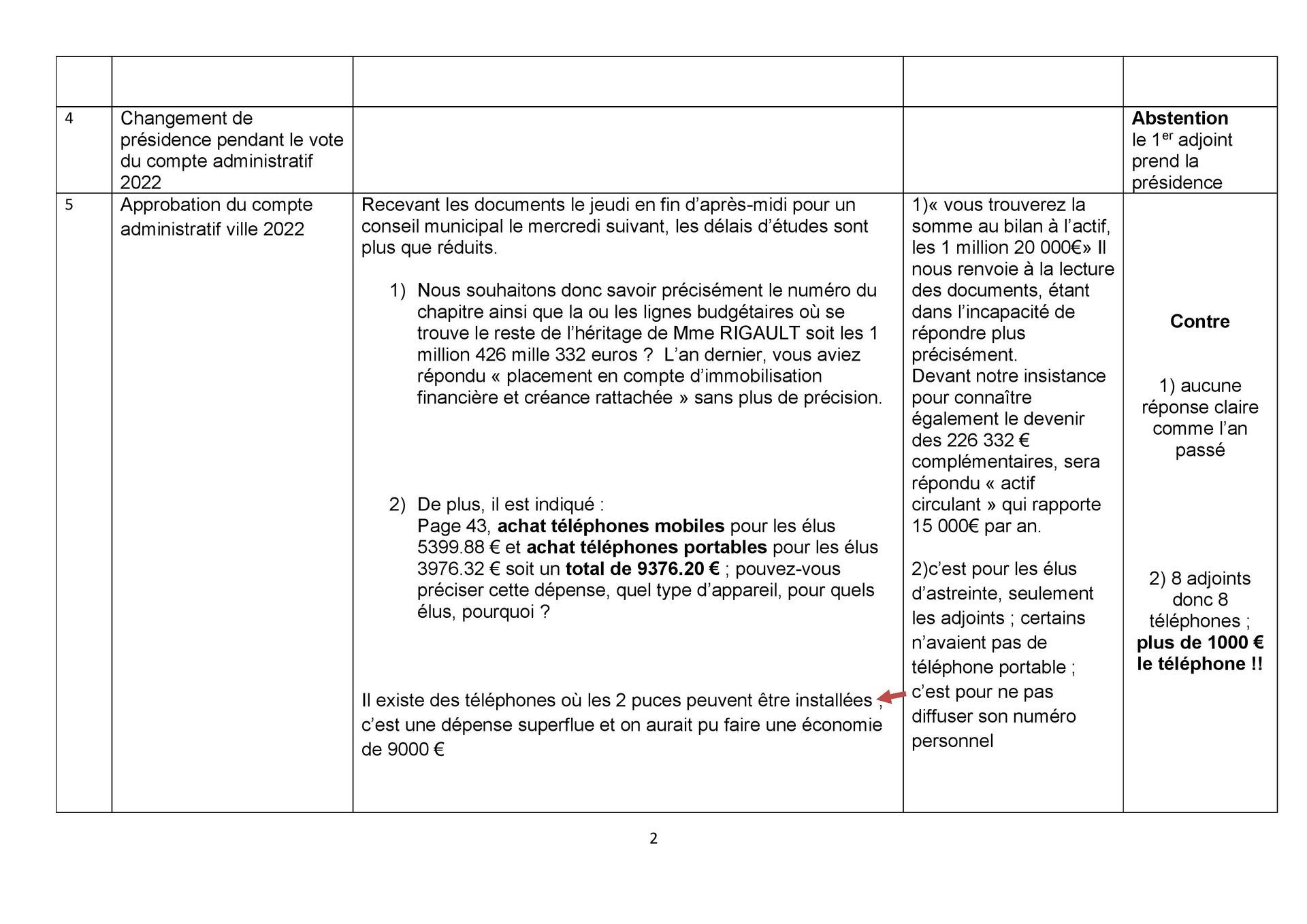 La question, « pouvez-vous préciser cette dépense, quel type d’appareil, pour quels élus, pourquoi ? » a donc été posée au 1er adjoint qui assure la présidence le temps de l’examen et du vote du compte administratif.