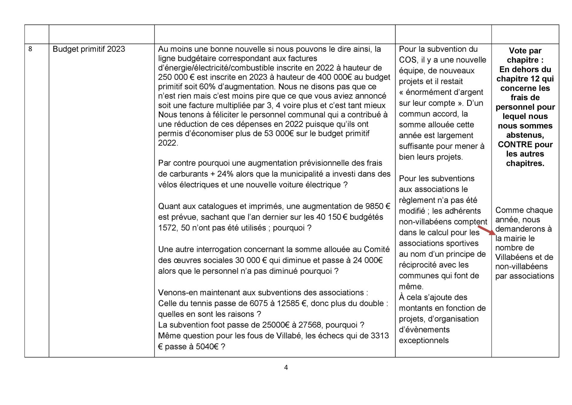 De plus, que les deniers publics villabéens servent à aider les associations, c’est une bonne chose. Mais nous remettons en cause les aides octroyées pour les adhérents qui n’habitent pas Villabé.
