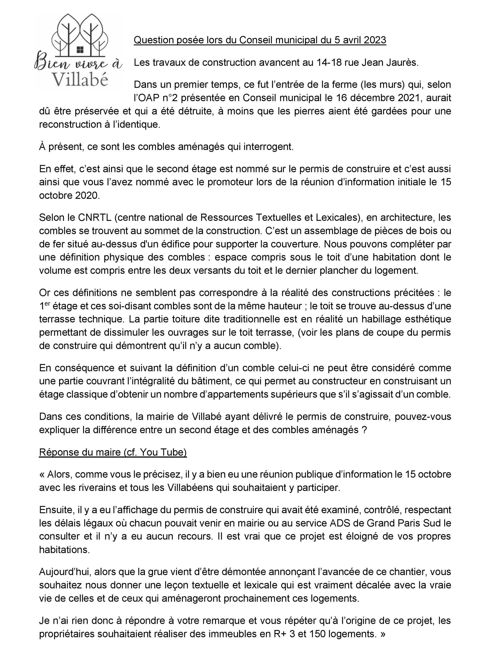 Question/réponse sur les constructions au 14-18 rue Jean Jaurès