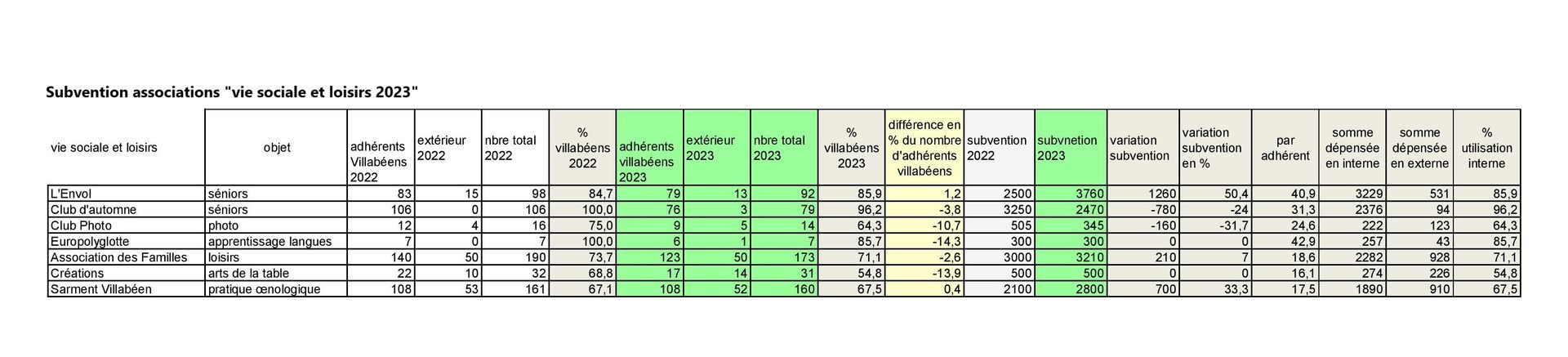 En bref, il y a des associations qui ont moins d’adhérents et qui ont une augmentation de leur subvention, une qui a 1 adhérent en plus et une subvention diminuée…