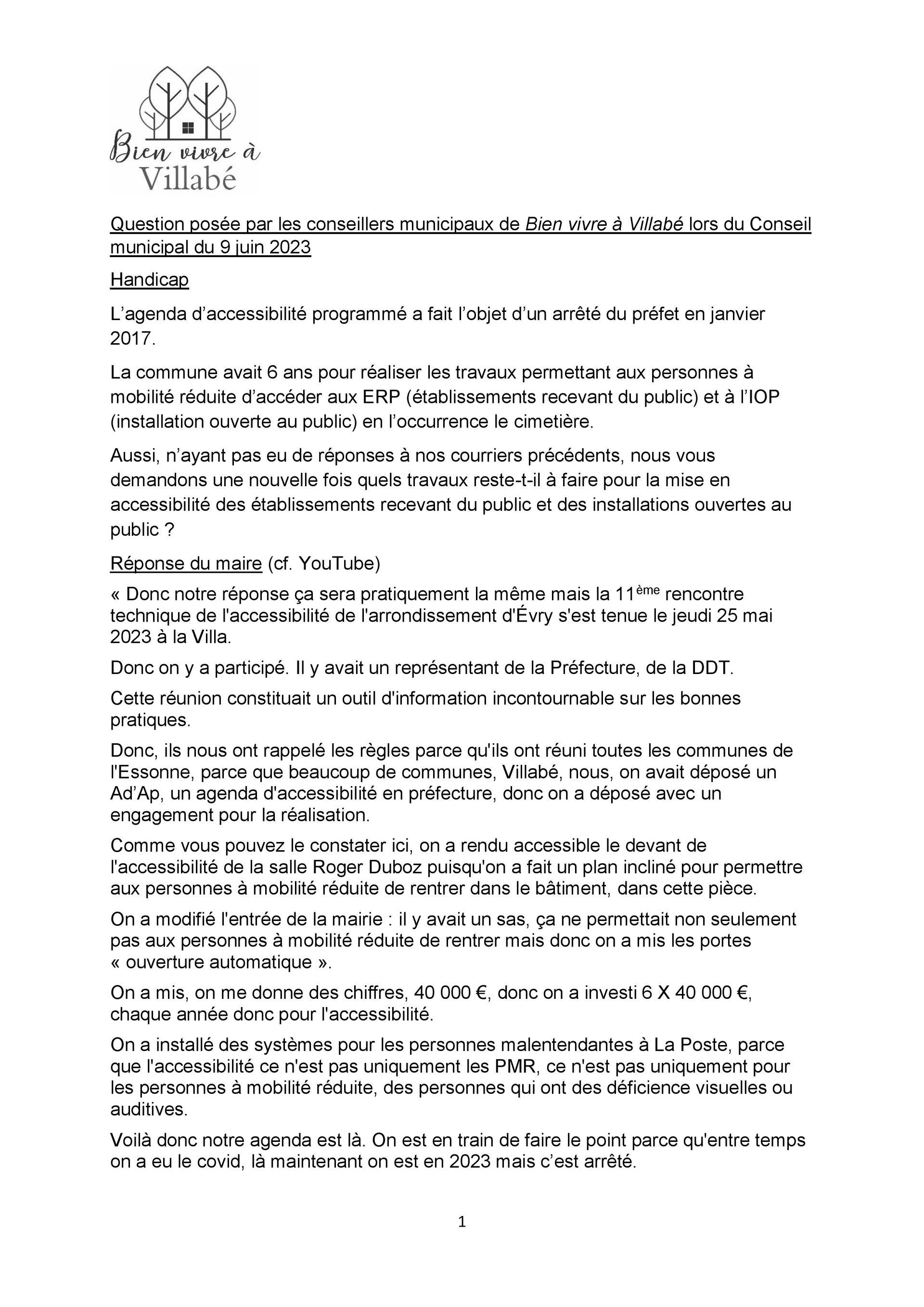 - La préfecture a rappelé aux communes dont Villabé l’obligation légale de mise en accessibilité