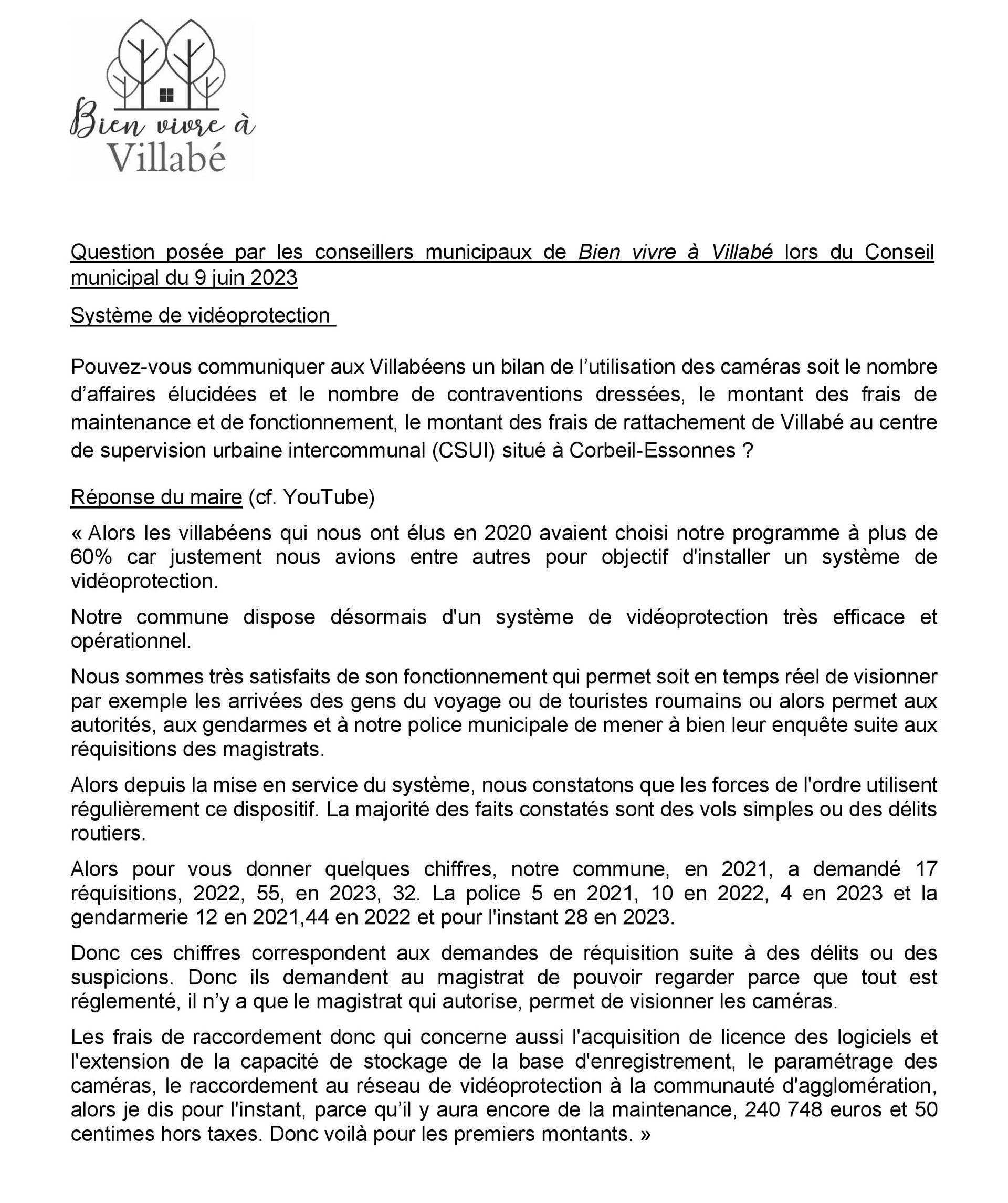 Nous en sommes déjà à plus de 541 000 € HT et pour quelle utilité ? Les actes de délinquance sur Villabé ont augmenté depuis 2020 (voir le texte publié sur notre site le 30/03/2023 : https://www.bienvivreavillabe.fr/article/securite/realite/facture )