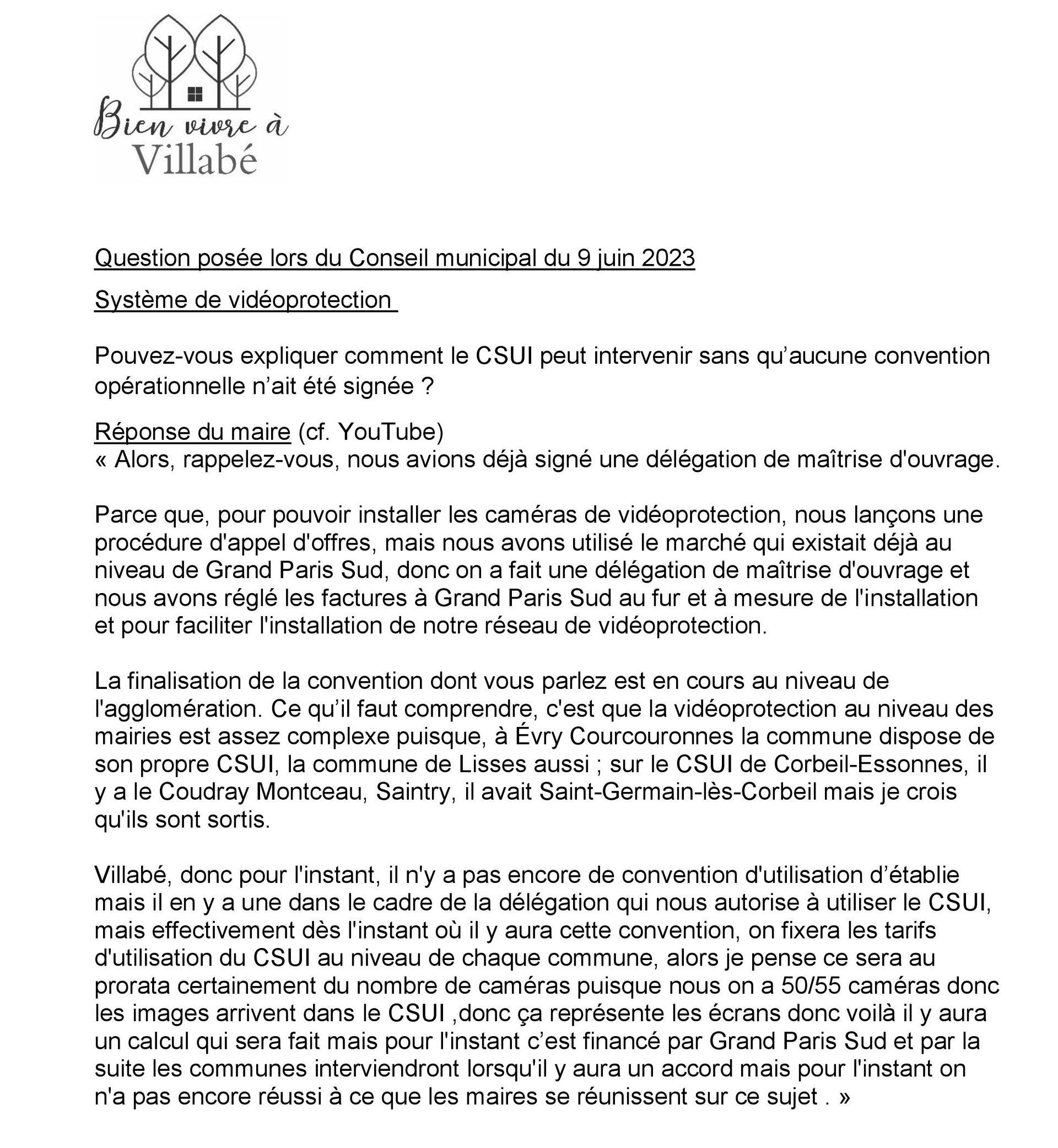 Voici le compte rendu rédigé par le groupe Bien vivre à Villabé