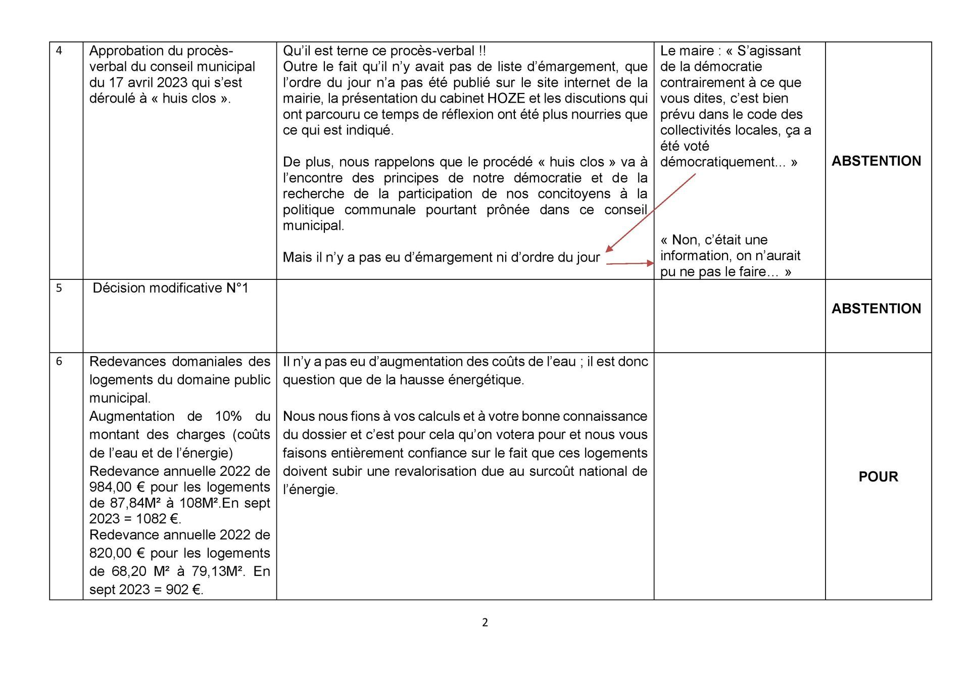 Si l’on se fie au tableau présenté dans la notice explicative, deux remarques/questions ont été posées au maire et à l’adjoint chargé entre autres de l’urbanisme social :