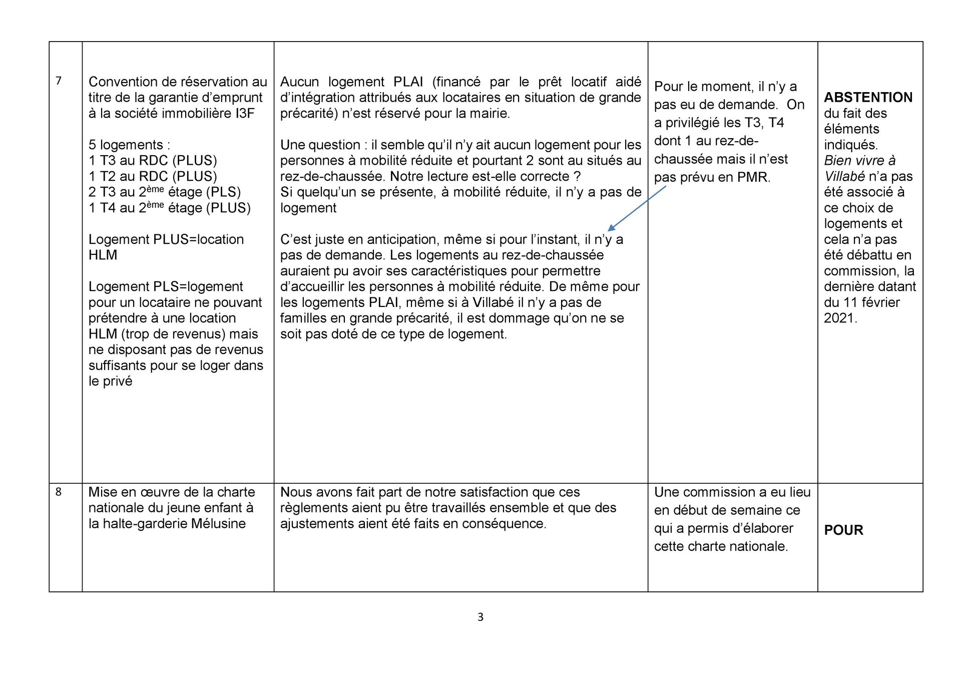 Vote des conseillers municipaux de Bien vivre à Villabé : ABSTENTION d’autant que leur groupe n’a jamais été associé à ce choix de logements et que cela n’a pas été débattu en commission, la seule et unique s’étant déroulée le 11 février 2021.