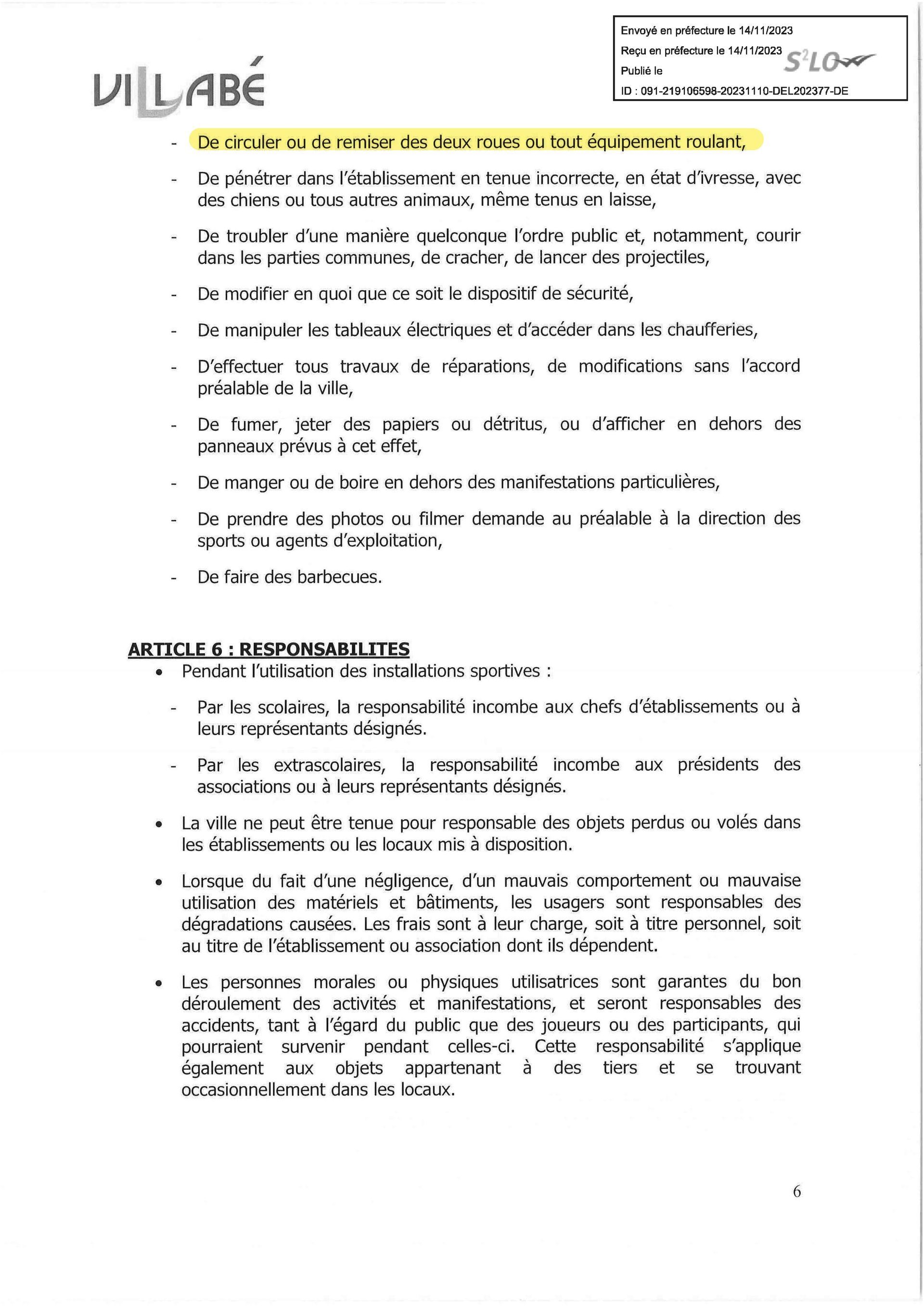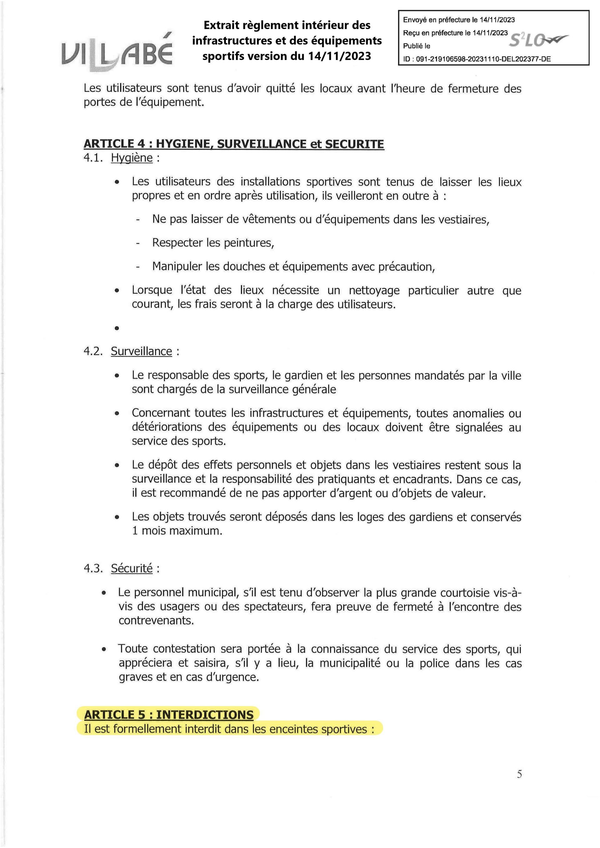 Ainsi, le point 13 a concerné le règlement intérieur des infrastructures et des équipements sportifs de la commune.