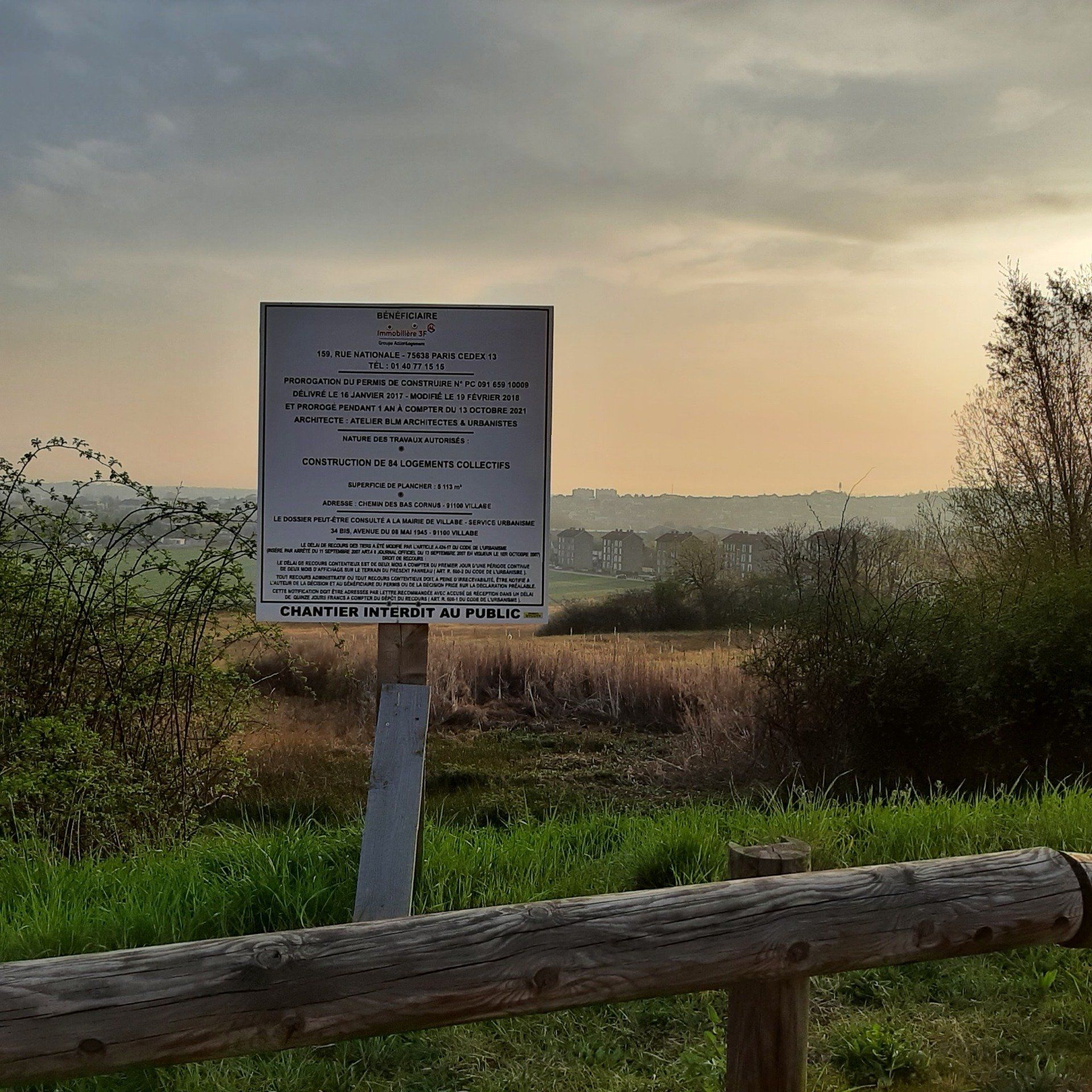 Nous savons que cela concerne les constructions envisagées par la société Immobilière 3F sur les coteaux du Cirque de l’Essonne, chemin des bas cornus.