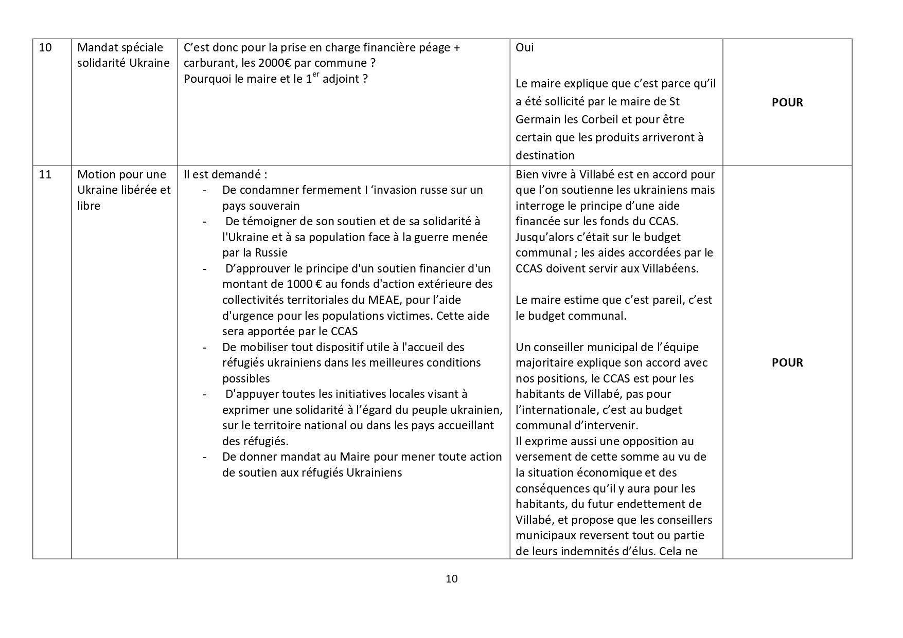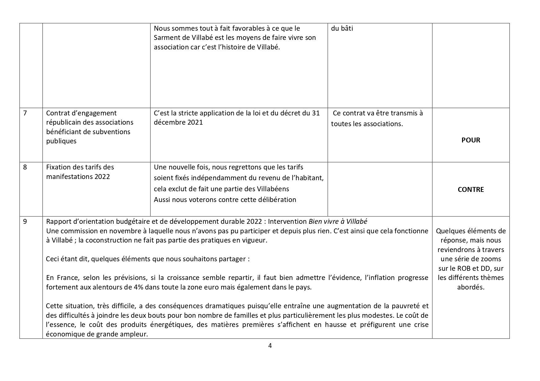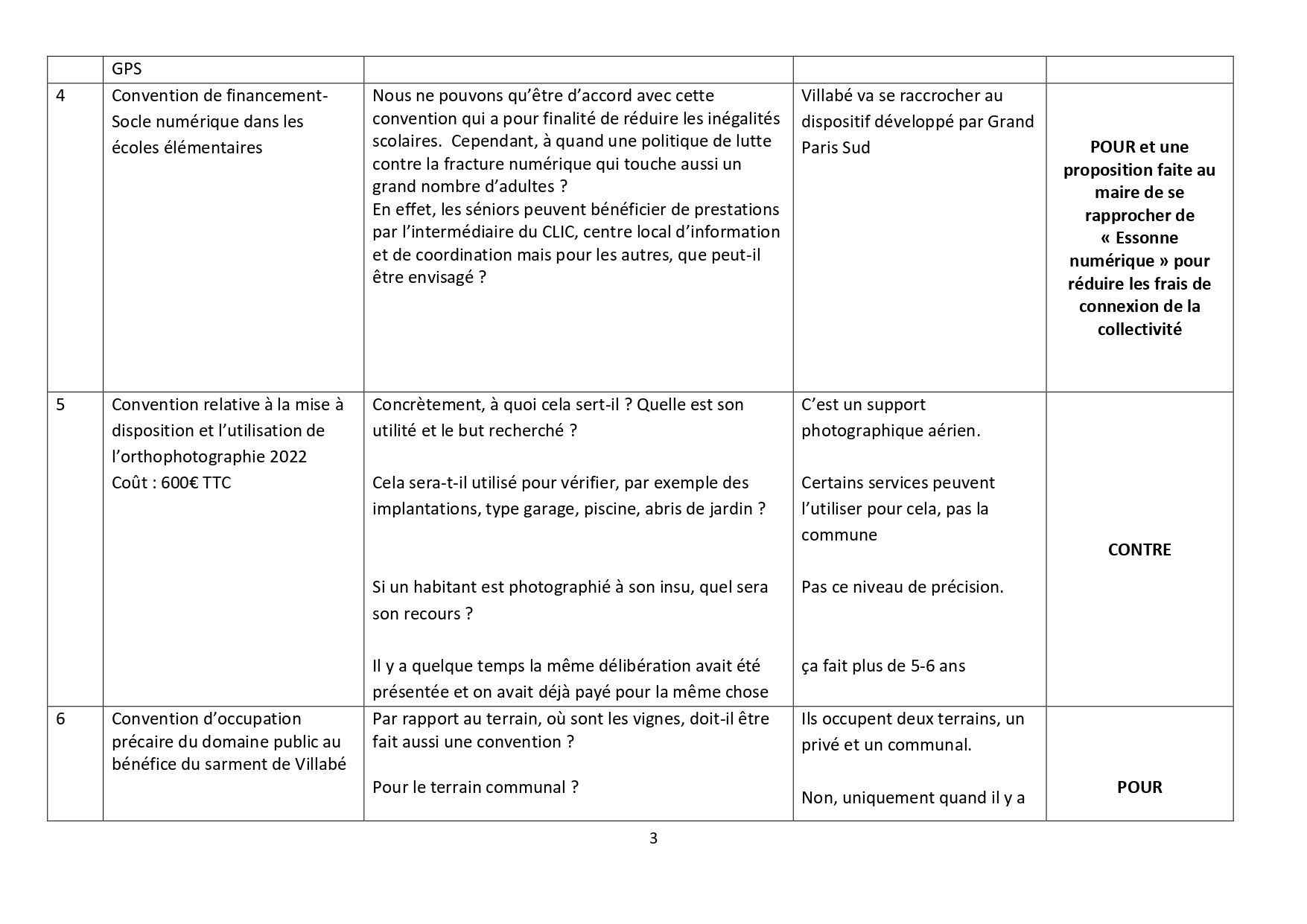 Pas de vote car c’est un « porter à connaissance » ; ce sont les décisions prises par le maire du fait de la délégation de pouvoir votée en conseil municipal et pour rappel les élus de Bien vivre à Villabé avaient voté contre cette délégation.