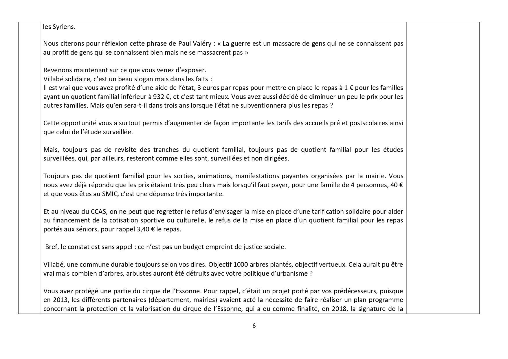 Intervention des élus de Bien vivre à Villabé :