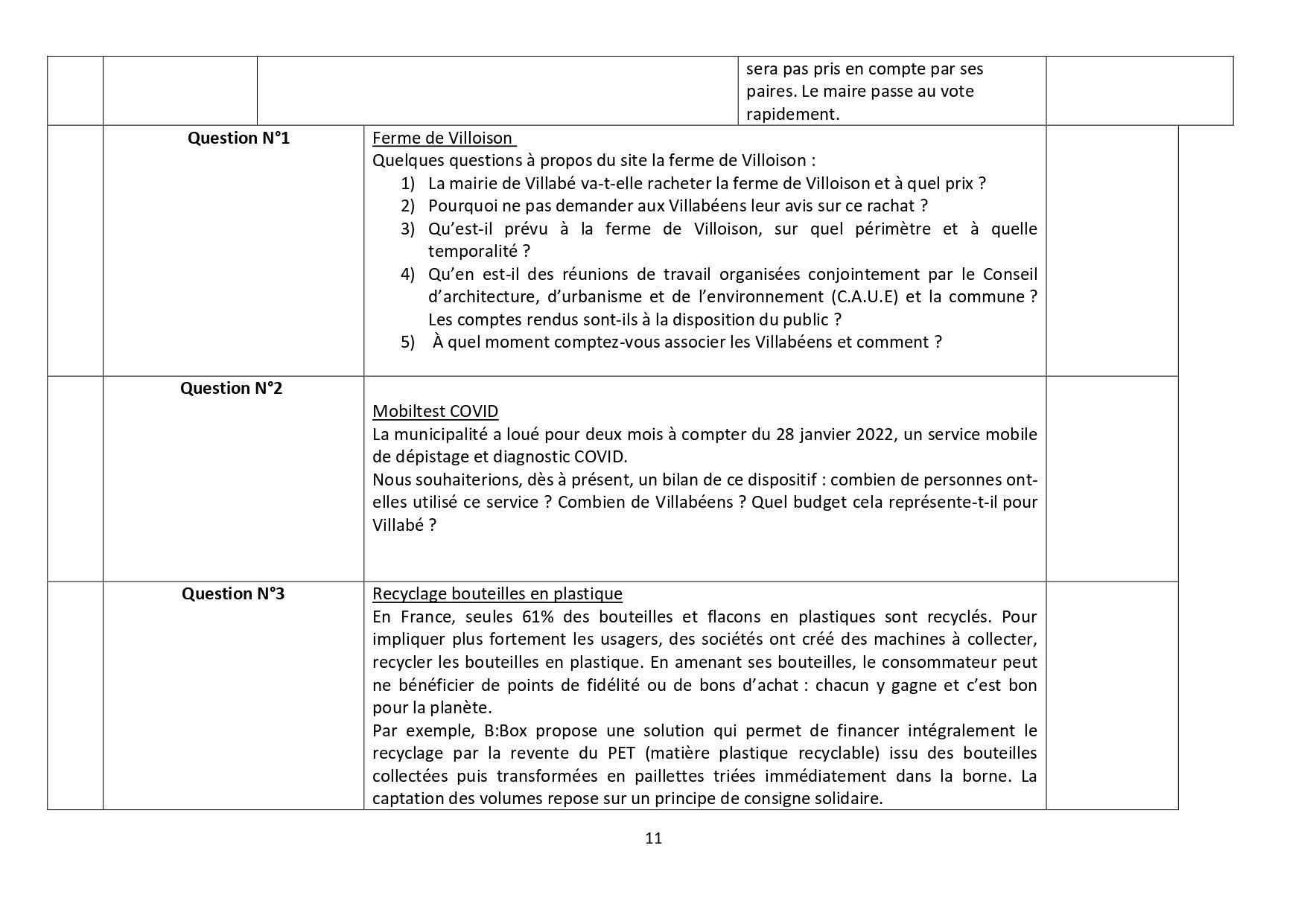 - Pourquoi ne pas demander aux Villabéens leur avis sur ce rachat ? Pas de réponse