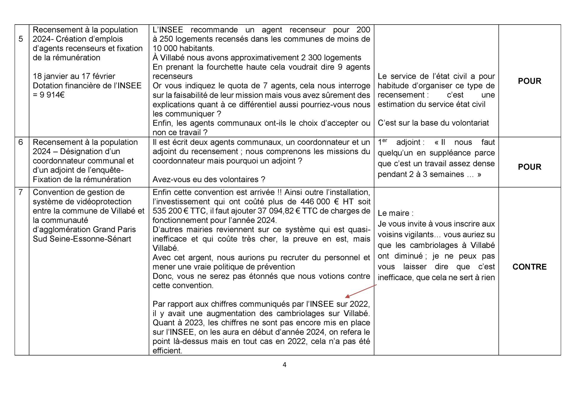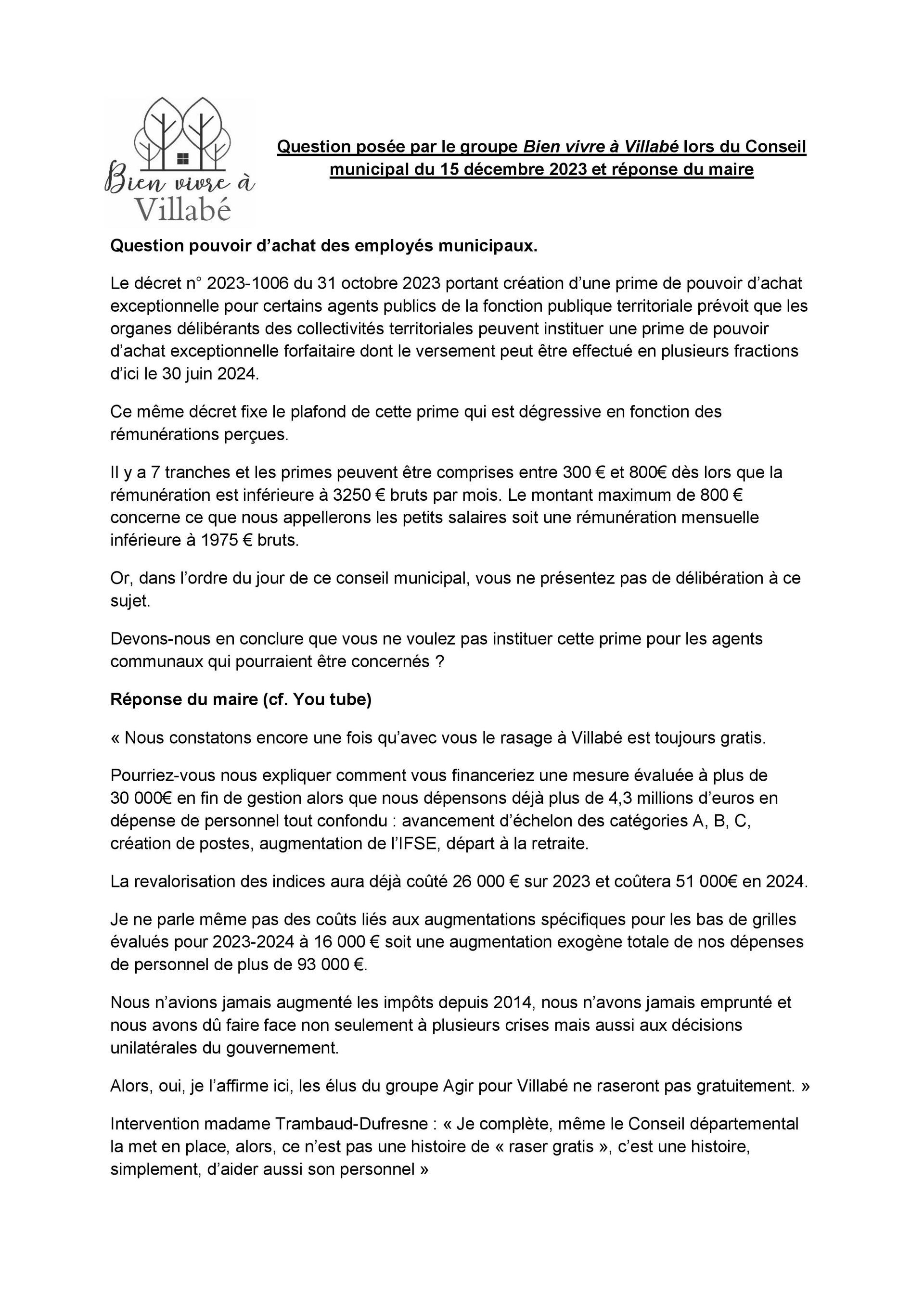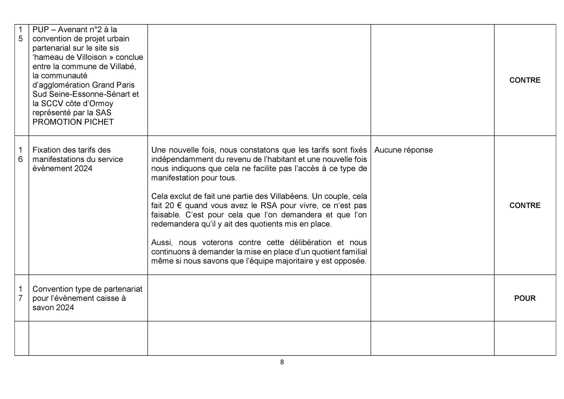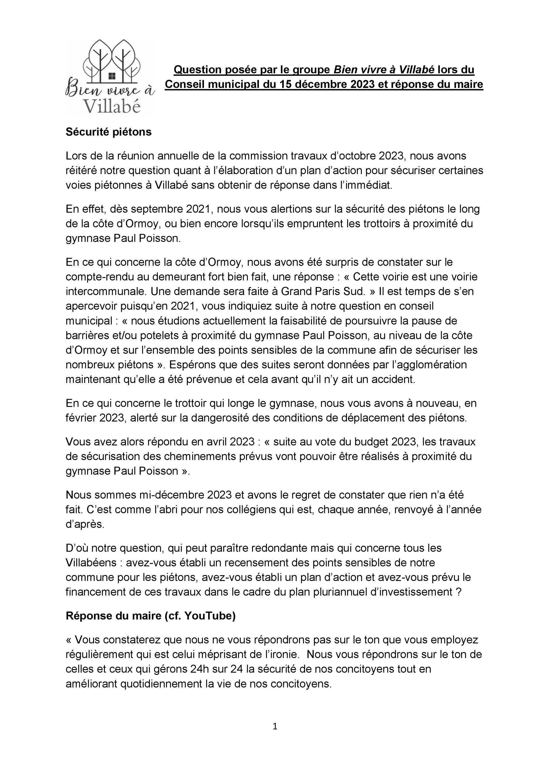 Quoique, nous pouvons noter une modification dans le langage de l’équipe majoritaire… Il est maintenant question de la crédibilité et de la légitimé des conseillers municipaux de Bien vivre à Villabé, qui sont remises en cause. Le maire dira comme explication « car vous n’avez voté aucun budget depuis 2020 ».