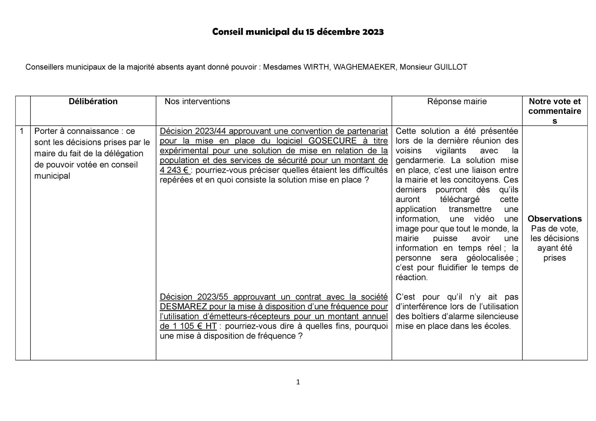 - la dépense d’un montant de 4 243 € pour la mise en place d’une convention pour une solution de mise en relation de la population avec les services de sécurité qui n’a comme seul intérêt que l’information de la mairie