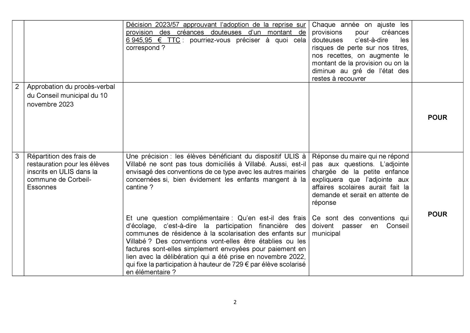 Zoom point 3 : convention facturation frais de restauration pour un élève de Villabé scolarisé au sein d’une unité locale d’inclusion scolaire (ULIS) à Corbeil-Essonnes.